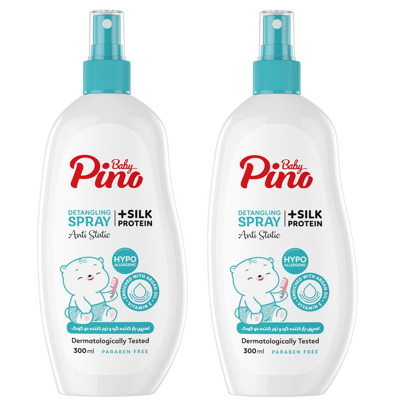 اسپری باز کننده گره و نرم کننده مو کودک پینو بیبی مدل پروتئین ابریشم حجم 300 میلی لیتر مجموعه 2 عددی