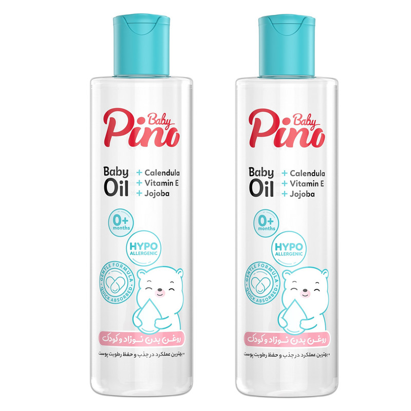 روغن بدن کودک پینو بیبی مدل غنیشده با روغن جوجوبا، کالاندولا و ویتامین E حجم 200 میلی لیتر مجموعه 2 عددی