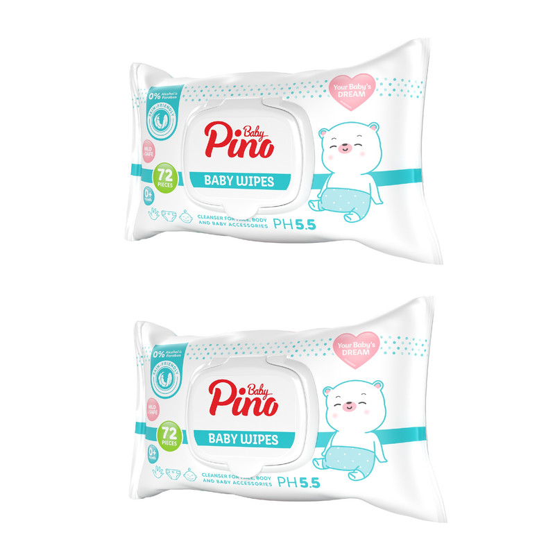 دستمال مرطوب کودک پینو بیبی مدل 001 دو بسته 72 عددی