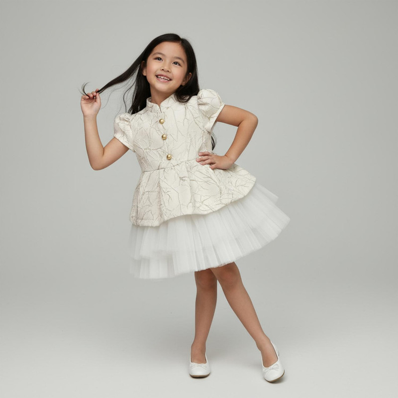 پیراهن آستین کوتاه یقه ایستاده دخترانه ژاکید مدل کاترین