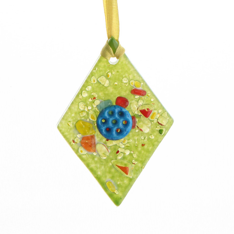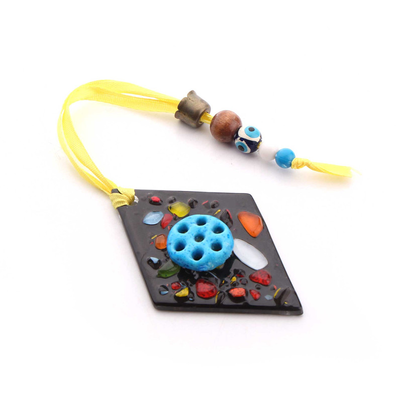 آویز همجوشی شیشه با تزیین خرمهره آرانیک مدل لوزی کد 1005400018