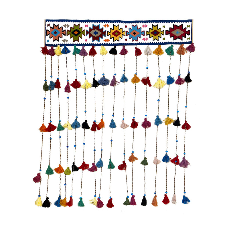 آویز سرپرده گلیمی رنگارنگ طرح منگوله دار مدل 1420100006