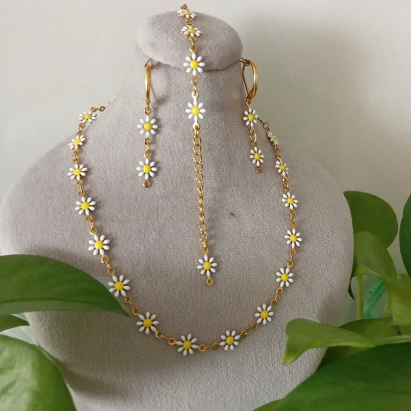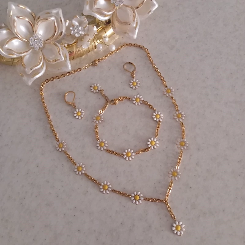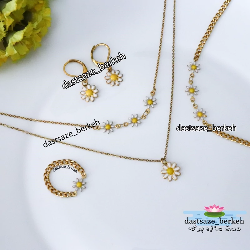سرویس دخترانه بابونه تمام استیل و رنگ ثابت . قبل از سفارش موجودی بگیرین . گردنبند بابونه . دستبند بابونه