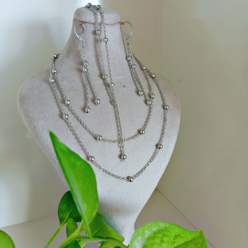 نیم ست زنانه استیل نقره ای مشابه طلا