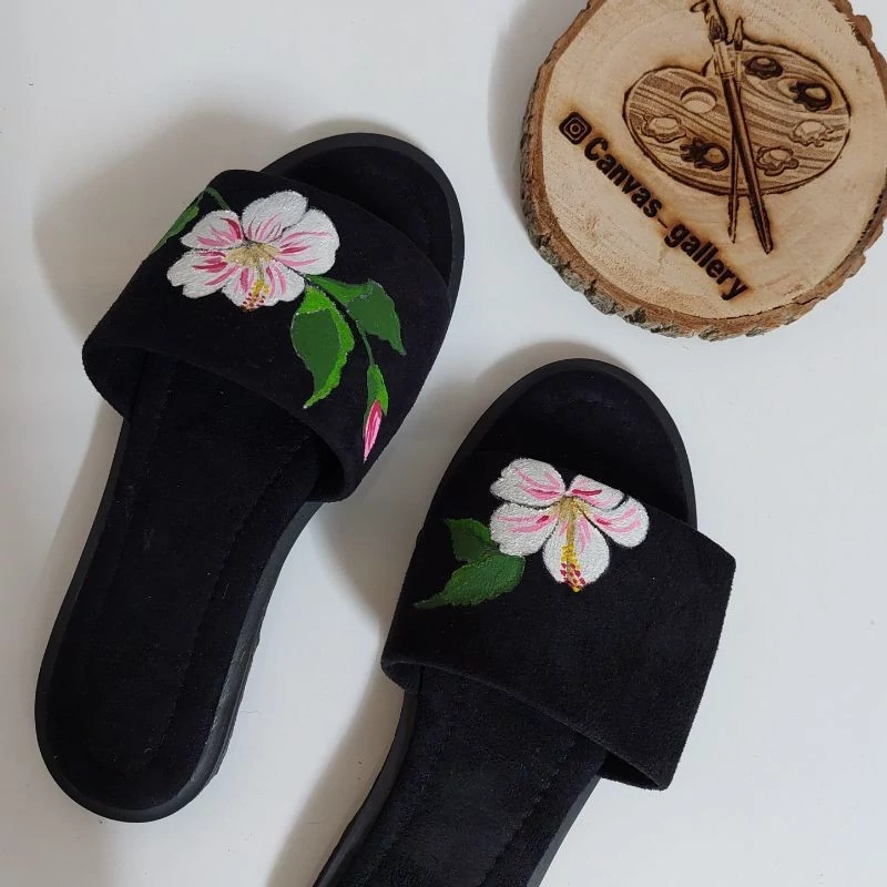 صندل سوییت مخمل، صندل روفرشی،صندل نقاشی شده،صندل مشکی،صندل بدون پاشنه
