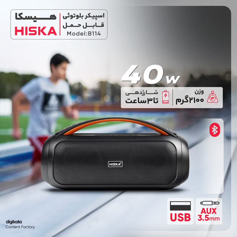 شرکت هیسکا یکی از برندهای شناخته شده در راستای تولید محصولات گوناگون مانند پاور بانک، آداپتور، هدفون و محصولات صوتی است. اسپیکر B114 از جدیدترین سری اسپیکرهای این برند است که طراحی در نظر گرفته شده برای این محصول کمی متفاوت از سایر محصولات هیسکا است، بهطوریکه میتوان گفت ابعاد کشیدهای دارد و بهطور کلی مستطیل شکل است که دستهای روی آن نیز در نظر گرفته شده و به شما اجازه میدهد تا بتوانید آن را بهراحتی به هر مکان و محیطی حمل کنید. ابعاد این اسپیکر نیز جمعوجور به نظر میرسد و فضایی که از شما اشغال میکند نیز چندان زیاد نیست؛ بنابراین شما میتوانید آن را بهراحتی با خود در مسافرتها و مهمانیها به همراه ببرید و استفاده کنید. همچنین باید متذکر شد که در طراحی آن از چراغهای ال ای دی چشمکزن نیز استفاده شده و زمانی که شما با این اسپیکر موزیکی پخش میکنید، رقصندههای نور فضای سرگرمکننده را برای شما ایجاد خواهند کرد. اگر به دنبال اسپیکری هستید که بتوانید با استفاده از آن بیس آهنگها را تقویت کنید و هیجان بیشتری به مهمانی و دورهمی خود ببخشید، اسپیکر بلوتوث هیسکا B114 انتخاب مناسبی برای شما خواهد بود.