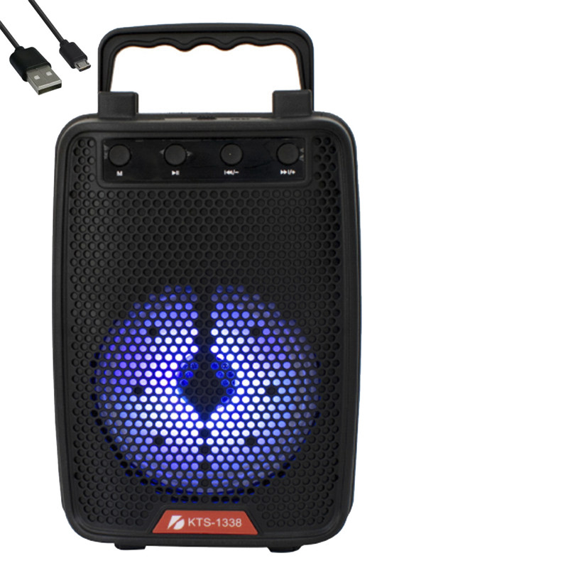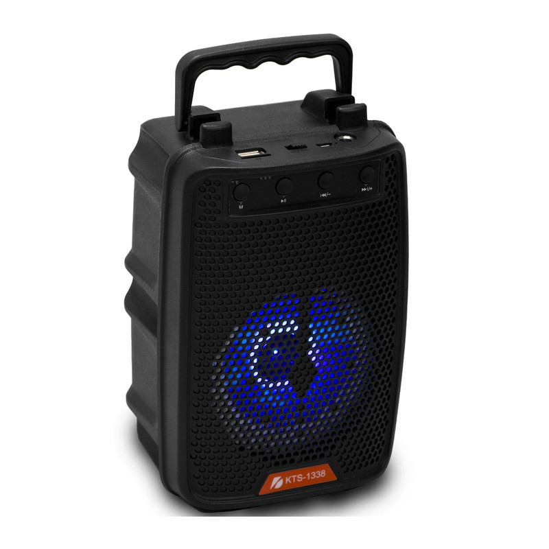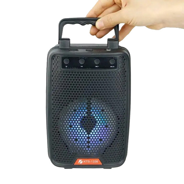کی تی اس 1338 یک اسپیکر بلوتوثی جذاب همراه با رقص نور با قدرت پرتاب صدای 4 اینچی با بیس مناسب است. این اسپیکر با دارا بودن محل قرار گیری دست جهت حمل و همچنین سطح نگهدارنده تلفن های همراه آن را به یک دستیار صوتی کوچک اما پرکاربرد برای استفاده های روزمره تلقی میگردد.