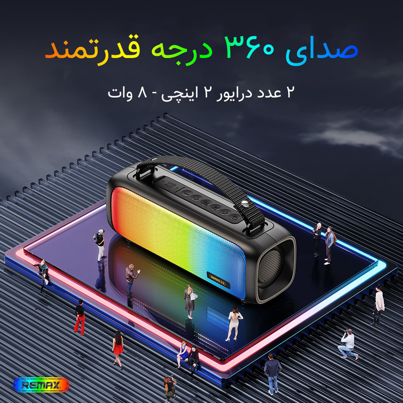 اسپیکر بلوتوث ریمکس ، به کمک دکمههای کنترلی ساده و پشتیبانی از حالتهای بلوتوث ، AUX و پخش از فلش، به راحتی قابل استفاده و اتصال به همه دستگاهها است و میتوانید از هر دستگاهی موسیقی پخش کنید. و با باتری 1500 میلیآمپر ساعتی میتوانید تا 7 ساعت از پخش مداوم لذت ببرید. اسپیکر بلوتوث ریمکس همراه مناسبی برای استفاده در منزل، محل کار یا خارج از منزل برای مهمانی یا فضاهای باز است. این اسپیکر دارای طراحی شیک، ظریف، بادوام و قابل حمل است و دارای دسته ای برای حمل آسان.