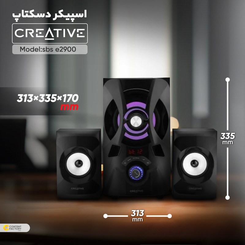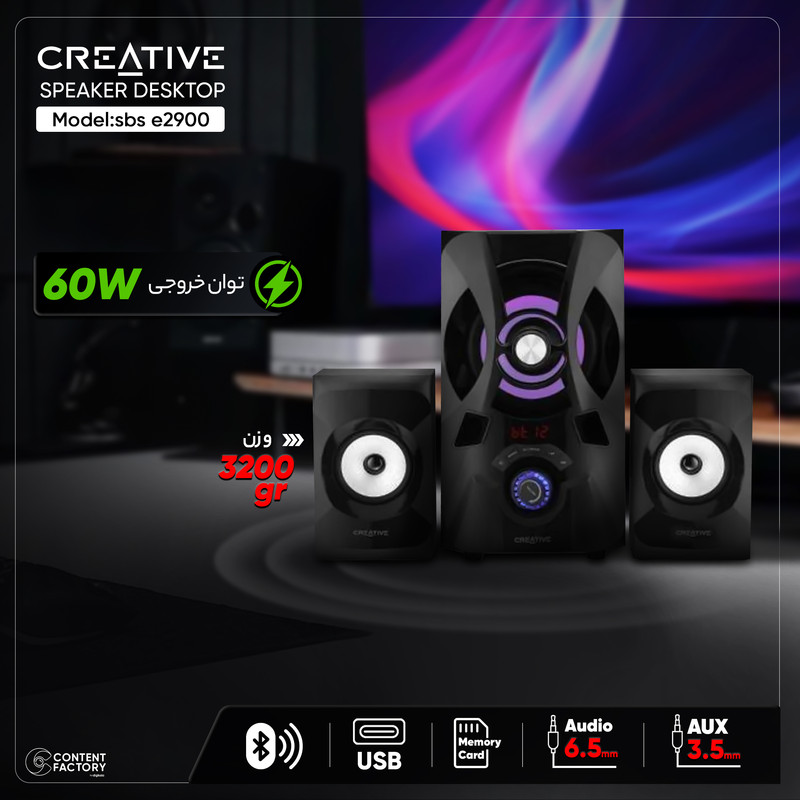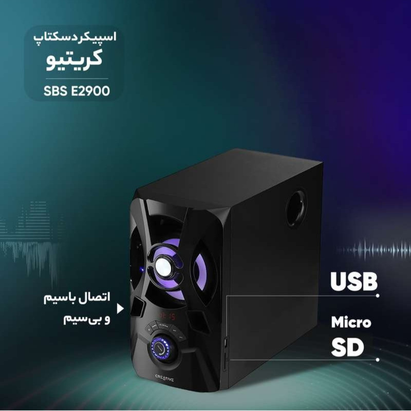 اسپیکر دسکتاپ بلوتوثی کریتیو مدل sbs e2900 یک سیستم با طراحی جذاب و عملکرد صوتی قوی است. این سیستم شامل یک سابووفر با توان 30 وات RMS و دو اسپیکر با توان 15 وات RMS هرکدام است، که به کاربر امکان میدهد صدایی قدرتمند و با کیفیت را تجربه کند. اتصالات متنوعی از جمله پورت USB و SD برای پخش رسانه، بلوتوث 5.0 برای اتصال به دستگاههای مختلف، و آنتن FM برای گوش دادن به رادیو فراهم شده است.