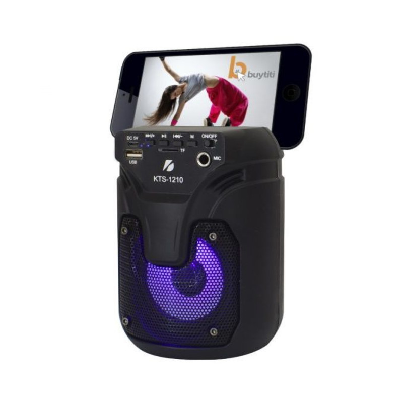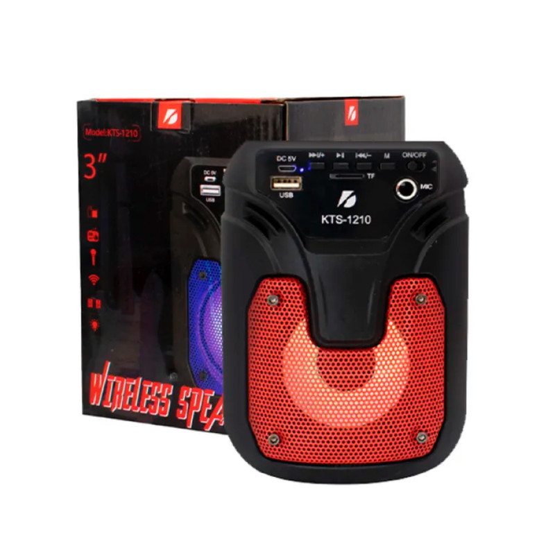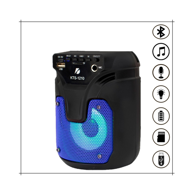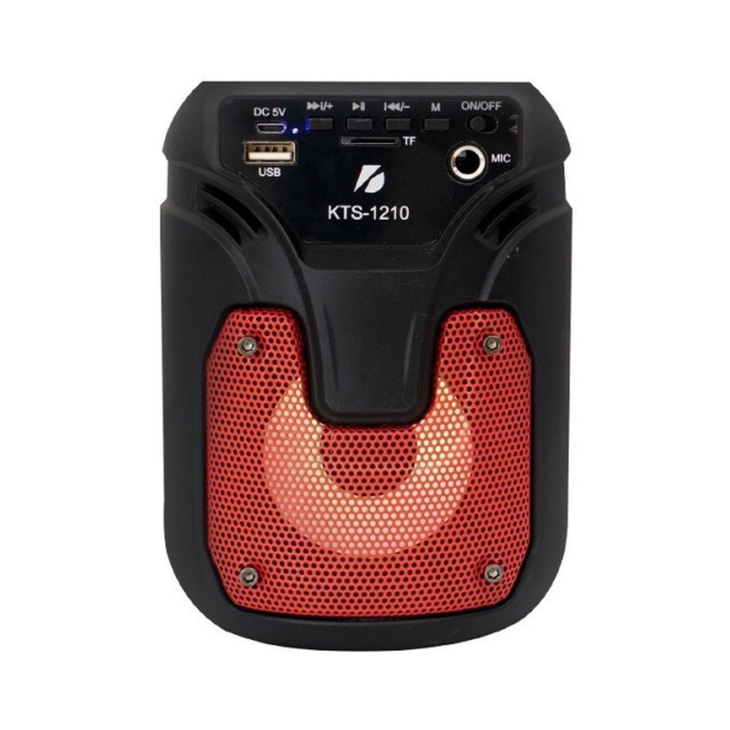 اسپیکر بلوتوثی قابل حمل مدل KTS-1210 برای تولید صدای شفاف در محیطهایی که به صداهای مختلف نیاز است ، طراحی شده و به زبان ساده هر نوع صدایی که میتوان به صورت با کیفیت در محیط شنید را برای شما تولید میکند. اسپیکر KTS-1210 به واسطه توان خروجی بالا؛ صدای پرقدرت و شفافی را در ابعادی وسیع، برای برگزاری مهمانیها و مجالس ایجاد میکند. علاوه بر حجم زیاد صدای خروجی، طراحی زیبا، افکتهای متنوع نورانی و قابل حمل بودن؛ این محصول را به یکی از منحصر به فردترین اسپیکر ها تبدیل کرده است . در ادامه به سایر مشخصات اسپیکر KTS-1210 می پردازیم :