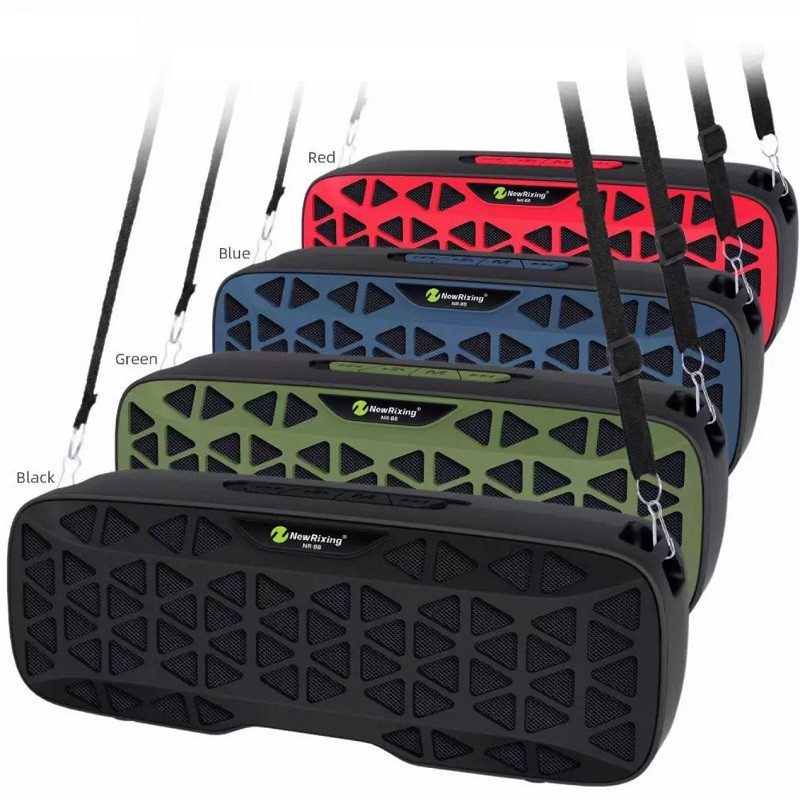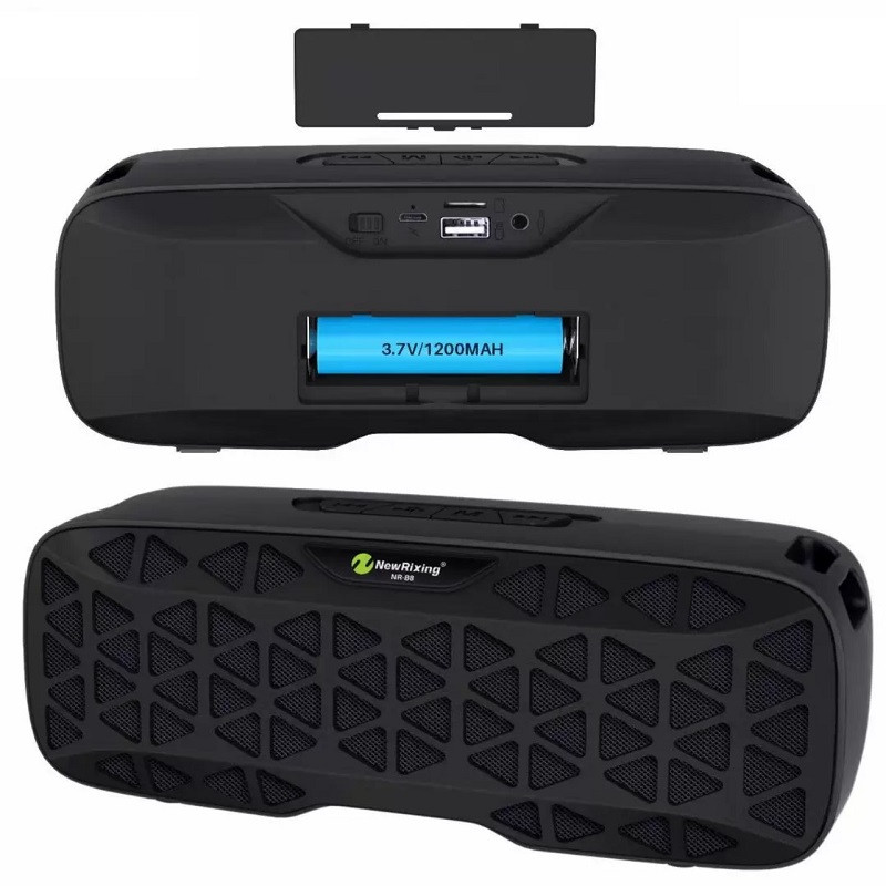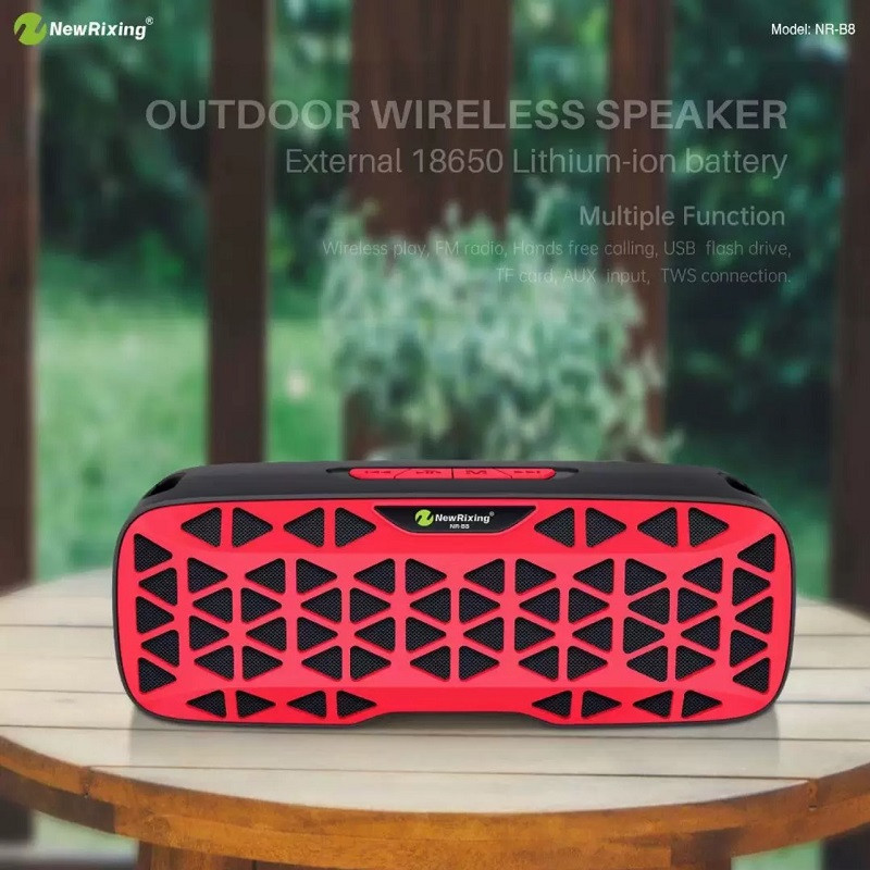 اسپیکر بلوتوثی قابل حمل مدل NewRixing NR-B8 دارای کیفیت صدای فوق العاده بالا است و همچنین مجهز به باتری با ظرفیت 2500 میلی آمپر می باشد که این باتری توانایی شارژدهی 7 تا 16 ساعت را دارا میباشد.برای اتصال به این اسپیکر میتوان از بلوتوث ، کابل aux ، فلش و کارت حافظه استفاده نمود.