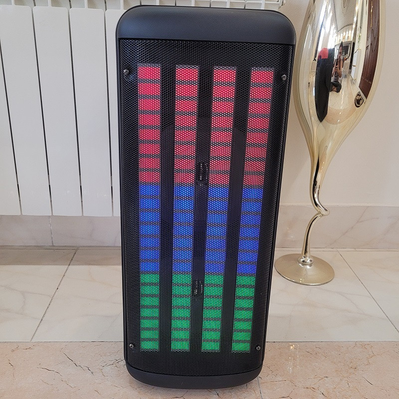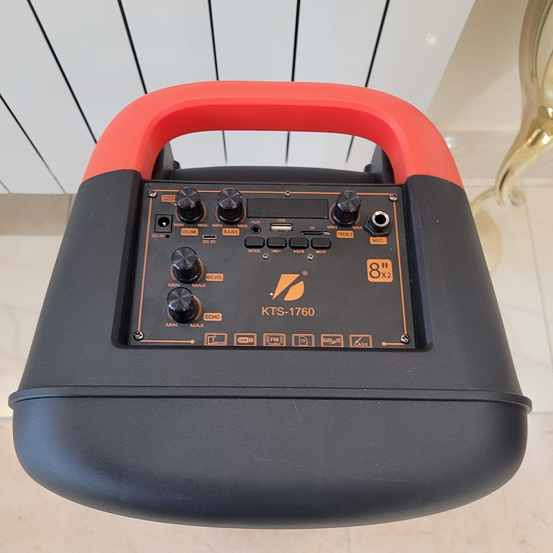 اسپیکر بلوتوثی kts با ظاهری زیبا و حرفه ای دارای جدیدترین رقص نور چند حالته حرفه ای و ساپورت رم و فلش و بلوتوث و دو بلندگو 8 اینچی و 1 تیوتر با توان خروجی 45 وات واقعی میتواند صدای بسیار قدرتمند و بیس فوق العاده ای را به ارمغان بیاورد با قابلیت تنظیم بیس و تریبل صدا مورد علاقه ی خود را کنترل کنید . کنترل از راه دور و میکروفون میتواند کار را تمام بکند .