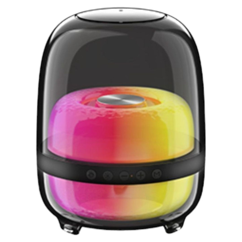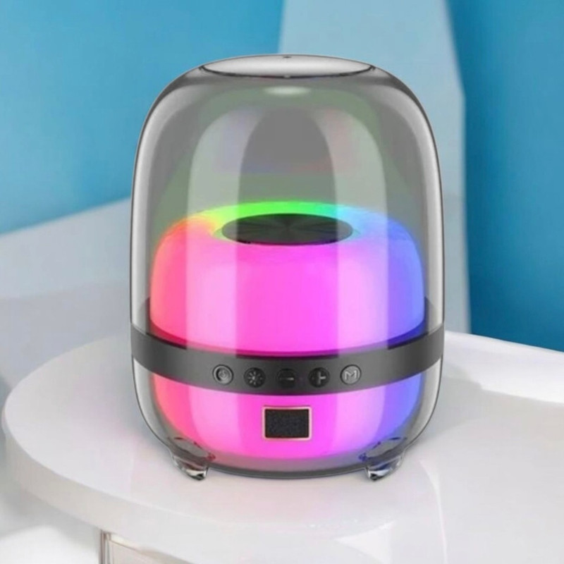 این اسپیکر با امکانات گوناگون نظیر بلوتوث ، پورت USB،AUX.TF رادیو FM،، و نورپردازیRGB متنوع صدای 360 و آن را به بهترین انتخاب برای همه تبدیل میکند. اسپیکر مذکور با توان و کیفیت صدای بالا، یکی از بهترین گزینههای بازار برای علاقمندان به موسیقی و سرگرمی می باشد.از قابلیت های مورد توجه این اسپیکر، استفاده از بلوتوث به روز است که امکان اتصال سریع و پایدار به دستگاههای مختلف را فراهم میکند. با داشتن پورت USB و درگاه کارت حافظه، aux و بلوتوث میتوانید به راحتی از فایلهای موسیقی موجود در حافظه داخلی یا دستگاههای خارجی استفاده کنید. وجود رادیو FM در این اسپیکر، امکان گوش دادن به محتوای مورد علاقه در هر زمان و مکان را فراهم میکند.این اسپیکر قادر است صدای قوی و بینظیری را تولید کند. از لحاظ طراحی، این اسپیکر دارای ابعاد مناسب و بلندگوی قدرتمند است. باتری بادوام این اسپیکر امکان استفاده مداوم از آن را فراهم ساخته است. همچنین قابلیت اتصال به گوشیهای هوشمند از طریق بلوتوث، به کاربران این امکان را میدهد تا به راحتی به پخش موسیقی، پاسخگویی به تماسها و استفاده از دستیار صوتی بپردازند. این اسپیکر با کیفیت صدای بینظیر خود، تمام جزئیات موسیقی را به شما منتقل میکند. توانایی بازتولید دقیق صدا، شما میتوانید به آهنگهای مورد علاقه خود را با کیفیت بالا گوش دهید . طراحی قابل حمل این اسپیکر، مزیتی است که شما را قادر میسازد همیشه و همه جا از موسیقی لذت ببرید.در مجموع این اسپیکر با ترکیب ویژگیهای منحصربهفرد خود، گزینه ایدهآلی برای موسیقیدوستان، گردشگران و افرادی است که به دنبال یک اسپیکر باکیفیت و قابل حمل هستند. این محصول میتواند تجربه شنیداری بینظیری را برای کاربران فراهم کند و با داشتن قابلیت مقاوم در برابر شوک و گرد و خاک و رطوبت امکان استفاده از آن را در محیطهای بیرون از خانه نیز امکانپذیر سازد. لازم به ذکر است کلیدهای فیزیکی موجود در قسمت کناری بدنه برای مدیریت و انجام تنظیمات مختلف مانند تغییر موزیک در حال پخش، ، تنظیم ولوم صدا، تغییر مود، تنظیم نورپردازی و … تعبیه شده اند.