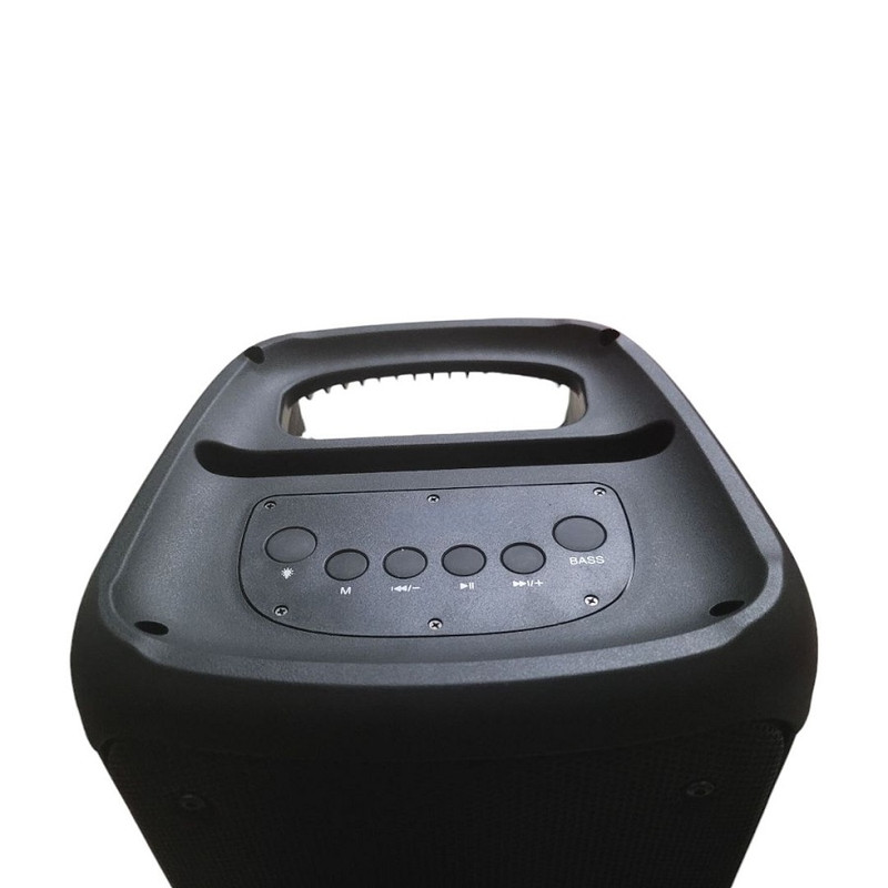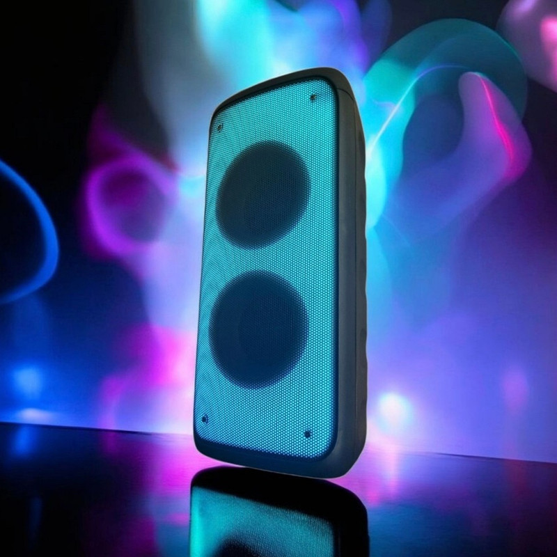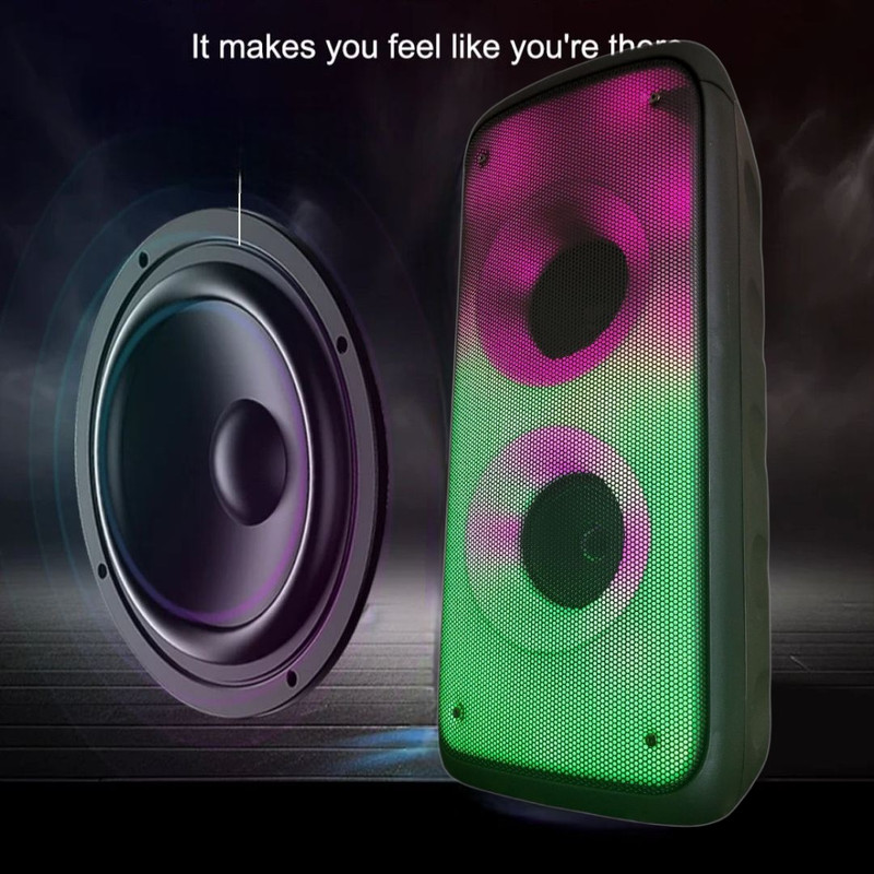 این اسپیکر با امکانات گوناگون نظیر بلوتوث ، پورت USB، رادیو TF . FM و aux، و نورپردازیRGB متنوع بسیار شیک ، آن را به بهترین انتخاب برای همه تبدیل میکند. اسپیکر مذکور با توان و کیفیت صدای بالا، یکی از بهترین گزینههای بازار برای علاقمندان به موسیقی و سرگرمی می باشد.از قابلیت های مورد توجه این اسپیکر، استفاده از بلوتوث به روز است که امکان اتصال سریع و پایدار به دستگاههای مختلف را فراهم میکند. با داشتن پورت USB و درگاه کارت حافظه، aux و بلوتوث میتوانید به راحتی از فایلهای موسیقی موجود در حافظه داخلی یا دستگاههای خارجی استفاده کنید. وجود رادیو FM در این اسپیکر، امکان گوش دادن به محتوای مورد علاقه در هر زمان و مکان را فراهم میکند.این اسپیکر قادر است صدای قوی و بینظیری را تولید کند.این اسپیکر دارای قابلیت افزایش BASS میباشد. از لحاظ طراحی، این اسپیکر دارای ابعاد مناسب و بلندگوی قدرتمند است. باتری بادوام این اسپیکر امکان استفاده مداوم از آن را فراهم ساخته است. همچنین قابلیت اتصال به گوشیهای هوشمند از طریق بلوتوث، به کاربران این امکان را میدهد تا به راحتی به پخش موسیقی، پاسخگویی به تماسها و استفاده از دستیار صوتی بپردازند. این اسپیکر با کیفیت صدای بینظیر خود، تمام جزئیات موسیقی را به شما منتقل میکند. با بیس قوی و توانایی بازتولید دقیق صدا، شما میتوانید به آهنگهای مورد علاقه خود را با کیفیت بالا گوش دهید . طراحی قابل حمل این اسپیکر، مزیتی است که شما را قادر میسازد همیشه و همه جا از موسیقی لذت ببرید.در مجموع این اسپیکر با ترکیب ویژگیهای منحصربهفرد خود، گزینه ایدهآلی برای موسیقیدوستان، گردشگران و افرادی است که به دنبال یک اسپیکر باکیفیت و قابل حمل هستند. این محصول میتواند تجربه شنیداری بینظیری را برای کاربران فراهم کند و با داشتن قابلیت مقاوم در برابر شوک و گرد و خاک و رطوبت امکان استفاده از آن را در محیطهای بیرون از خانه نیز امکانپذیر سازد. لازم به ذکر است کلیدهای فیزیکی موجود در قسمت بالایی بدنه برای مدیریت و انجام تنظیمات مختلف مانند تغییر موزیک در حال پخش، توقف یا پخش مجدد، تنظیم ولوم صدا، تغییر مود، تنظیم نورپردازی و … تعبیه شده اند.