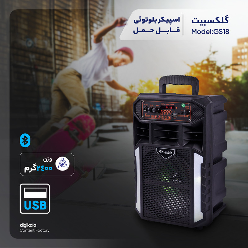 اسپیکر بلوتوثی قابل حمل گلکسبیت مدل GS18 یکی از اسپیکرهای بیسیم پرطرفدار موجود در بازار است که امکان گوش دادن به موسیقی با کیفیت واقعی را در هر لحظه و هر مکان فراهم میکند. این اسپیکر با طراحی زیبا، صدای قدرتمند و قابلیت حمل آسان، تجربهای بینظیر را برای علاقهمندان به موسیقی فراهم میکند.