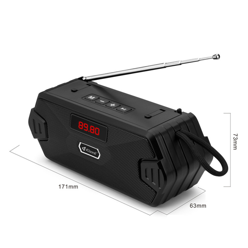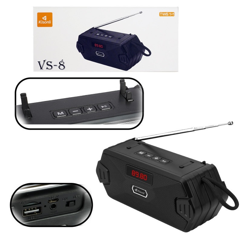 سپیکر LED-904 محصولی از کمپانی خوش نام kisonli بوده که از کیفیت بسیار خوبی برخوردار میباشد شما می توانید با یک بار شارژ این محصول ، 4تا6 ساعت برای موسیقی از آن استفاده کنید.جنس بدنه این محصول از پلاستیک +ABS بوده این اسپیکر در مجموع توانی معادل 5 وات دارد در پشت این محصول بلوتوث ، رم میکرو SD ، فلش USB و کابل AUX قرار گرفته.