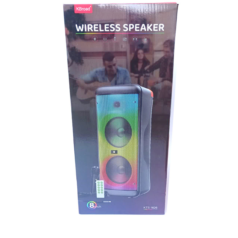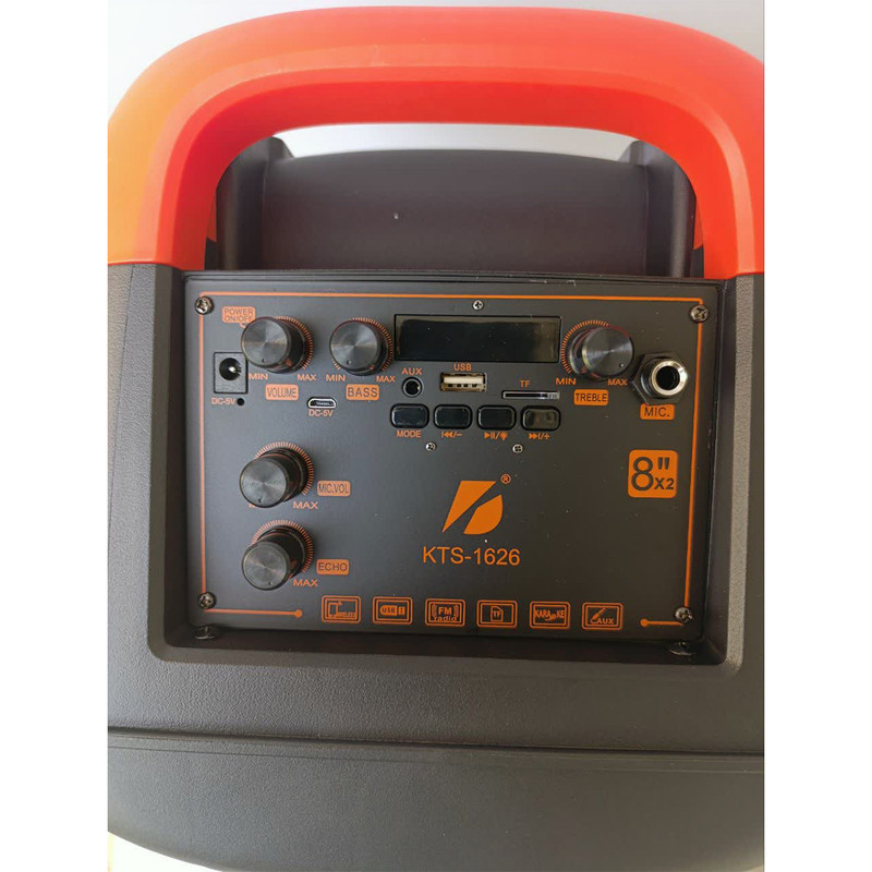 سری KTS یکی از پرطرفدار ترین سری اسپیکرهای بازار که تونسته در کنار تنوع بالا و محصولات متنوع اقتصادی بخش زیادی از افراد رو به سمت خودش جذب کنه ، اسپیکر (1626-KTS یکی از جدید ترین اسپیکرهای این شرکت با قابلیتهای زیادی وارد بازار شده و تونسته محبوبیت خوبی داشته باشه از مشخصات این اسپیکر دو باند 8 اینچی که در مجموع یک اسپیکر 16 اینچی میشه دو خروجی 20 واتی و باتری 2400 میلی آمپر ، ساپورت رم تا 32 گیگ که نیازه به 3 ساعت شارژ شدن داره توسط کابل DC که البته نیاز به یک آداپتور USB داره ، ریموت کنترل و میکروفون سیمی از دیگر اقلام همراه 1626-KTS هست و امکان تنظیم باس / تریبل اکو رو شامل میشه همچنین اتصال فلش مموری میکروفون /AUX از ورودی های این اسپیکر محسوب میشه که با هربار شارژ کردن چیزی حدود 2 الی 3 ساعت بسته به میزان استفاده و شدت صدا قابل استفاده خواهد بود