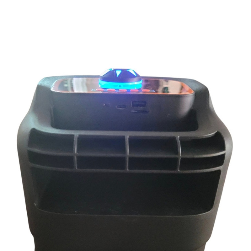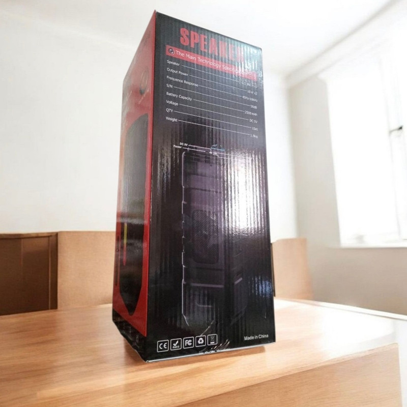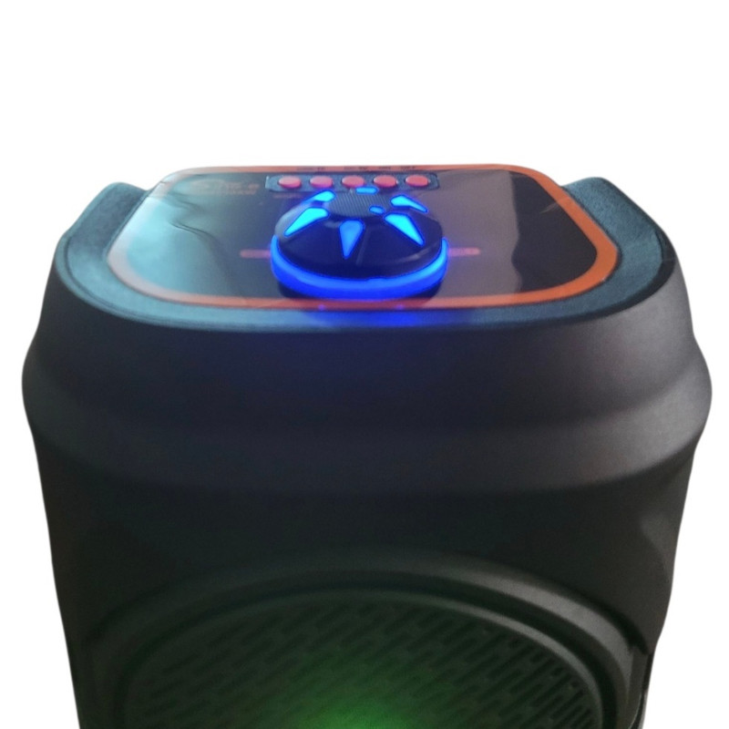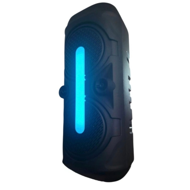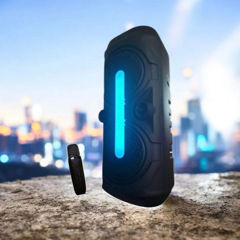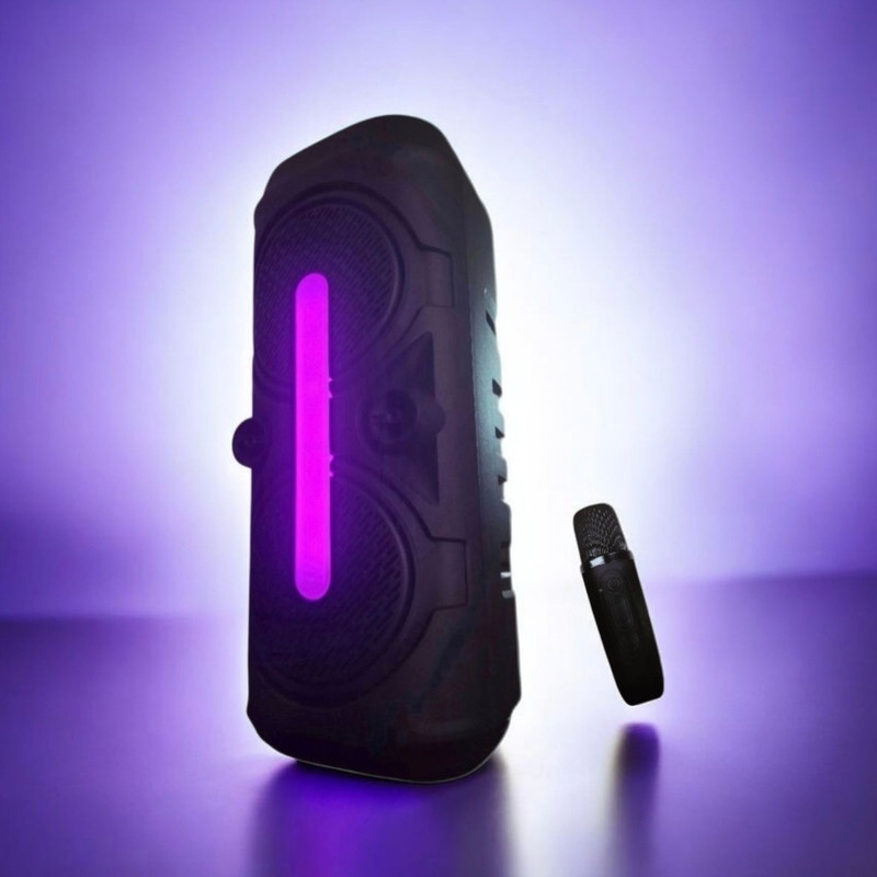 این اسپیکر با امکانات گوناگون نظیر بلوتوث ، پورت USB، TF رادیو FM، دو عدد میکروفن وایرلست با کیفیت، و نورپردازیRGB متنوع و هماهنگ با موزیک، آن را به بهترین انتخاب برای همه تبدیل میکند. اسپیکر مذکور با توان و کیفیت صدای بالا، یکی از بهترین گزینههای بازار برای علاقمندان به موسیقی و سرگرمی می باشد.از قابلیت های مورد توجه این اسپیکر، استفاده از بلوتوث به روز است که امکان اتصال سریع و پایدار به دستگاههای مختلف را فراهم میکند. با داشتن پورت USB و درگاه کارت حافظه، بلوتوث میتوانید به راحتی از فایلهای موسیقی موجود در حافظه داخلی یا دستگاههای خارجی استفاده کنید. وجود رادیو FM در این اسپیکر، امکان گوش دادن به محتوای مورد علاقه در هر زمان و مکان را فراهم میکند.این اسپیکر قادر است صدای قوی و بینظیری را تولید کند.میکروفون با کیفیت این اسپیکر میتواند لذت استفاده را بیشتر کند. از لحاظ طراحی، این اسپیکر دارای ابعاد مناسب و بلندگوی قدرتمند است. باتری بادوام این اسپیکر امکان استفاده مداوم از آن را فراهم ساخته است. همچنین قابلیت اتصال به گوشیهای هوشمند از طریق بلوتوث، به کاربران این امکان را میدهد تا به راحتی به پخش موسیقی، پاسخگویی به تماسها و استفاده از دستیار صوتی بپردازند. این اسپیکر با کیفیت صدای بینظیر خود، تمام جزئیات موسیقی را به شما منتقل میکند. با صدای قوی و توانایی بازتولید دقیق صدا، شما میتوانید به آهنگهای مورد علاقه خود را با کیفیت بالا گوش دهید . طراحی قابل حمل این اسپیکر، مزیتی است که شما را قادر میسازد همیشه و همه جا از موسیقی لذت ببرید.در مجموع این اسپیکر با ترکیب ویژگیهای منحصربهفرد خود، گزینه ایدهآلی برای موسیقیدوستان، گردشگران و افرادی است که به دنبال یک اسپیکر باکیفیت و قابل حمل هستند. این محصول میتواند تجربه شنیداری بینظیری را برای کاربران فراهم کند و با داشتن قابلیت مقاوم در برابر شوک و گرد و خاک و رطوبت امکان استفاده از آن را در محیطهای بیرون از خانه نیز امکانپذیر سازد. لازم به ذکر است کلیدهای فیزیکی موجود در قسمت بالایی بدنه برای مدیریت و انجام تنظیمات مختلف مانند تغییر موزیک در حال پخش، توقف یا پخش مجدد، تنظیم ولوم صدا، تغییر مود، تنظیم نورپردازی و … تعبیه شده اند.