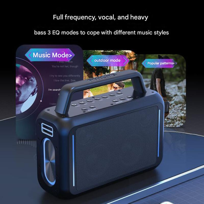 امروزه، نیاز به یک اسپیکر قابل حمل و مقاوم در برابر شرایط محیطی، بیش از هر زمان دیگری احساس میشود. اسپیکر بلوتوثی فیلیپس مدل SD228 از سری 2000، با طراحی مقاوم و کیفیت صدای عالی، یک انتخاب مناسب برای علاقهمندان به موسیقی در فضای باز است. این اسپیکر به لطف ویژگیهای متعددی همچون بدنهی ضدآب و مقاوم در برابر گردوغبار، باتری بادوام، قابلیت اتصال بیسیم بلوتوث، و امکانات پیشرفتهی صوتی، یک تجربهی صوتی لذتبخش را در هر شرایطی فراهم میکند.این مدل از برند فیلیپس، نهتنها صدایی قدرتمند و واضح ارائه میدهد، بلکه به لطف طراحی مدرن و سبک خود، حمل و استفادهی راحتی را برای کاربران فراهم میکند. قابلیت اتصال به گوشیهای هوشمند مانند Galaxy A33 5G، لپتاپ و دیگر دستگاههای بلوتوثی، باعث شده تا اسپیکر SD228 به یک گزینهی ایدهآل برای سفر، کمپینگ، مهمانیهای دوستانه و جلسات کاری در فضای باز تبدیل شود. علاوه بر این، وجود ویژگیهای پیشرفته مانند نورپردازی LED، کنترل پنل کاربرپسند، و حالتهای صوتی متنوع، تجربهی موسیقیایی را به سطح بالاتری ارتقا داده است.این اسپیکر با پشتیبانی از ورودیهای مختلف از جمله کارت SD، پورت AUX و USB، انعطافپذیری بالایی در اتصال به دستگاههای مختلف ارائه میدهد. مدتزمان شارژدهی طولانی آن نیز، نگرانی کاربران از خاموش شدن دستگاه در هنگام استفادههای طولانی را برطرف میکند. در ادامه، با ویژگیهای خاص و مشخصات فنی این محصول بیشتر آشنا میشویم.