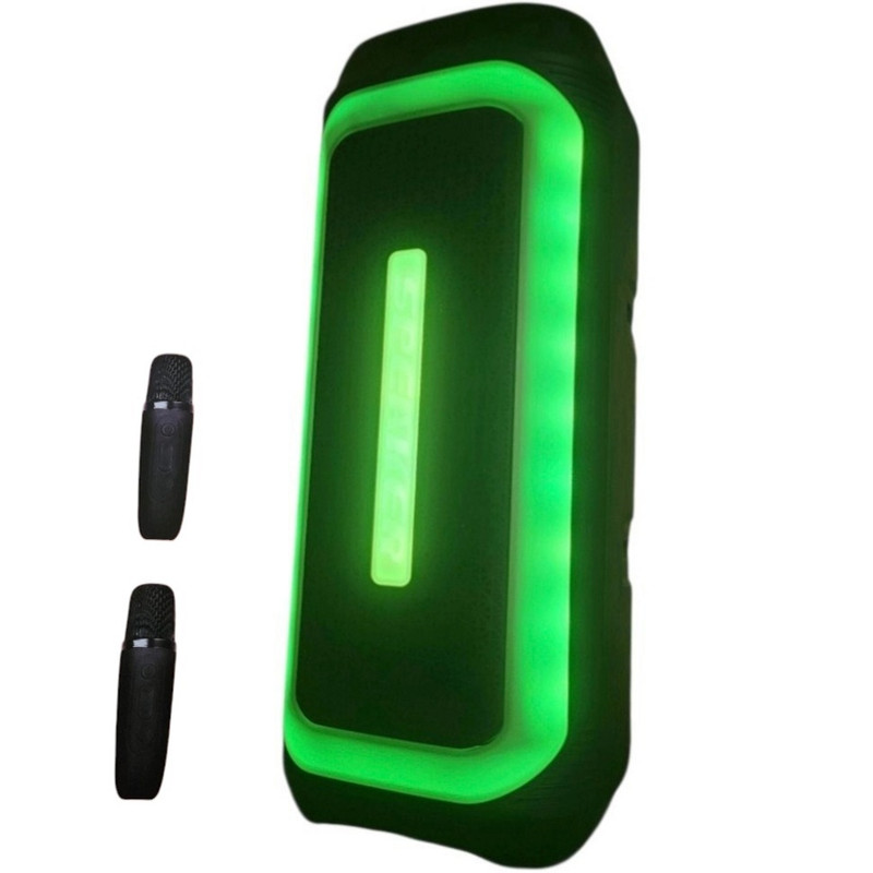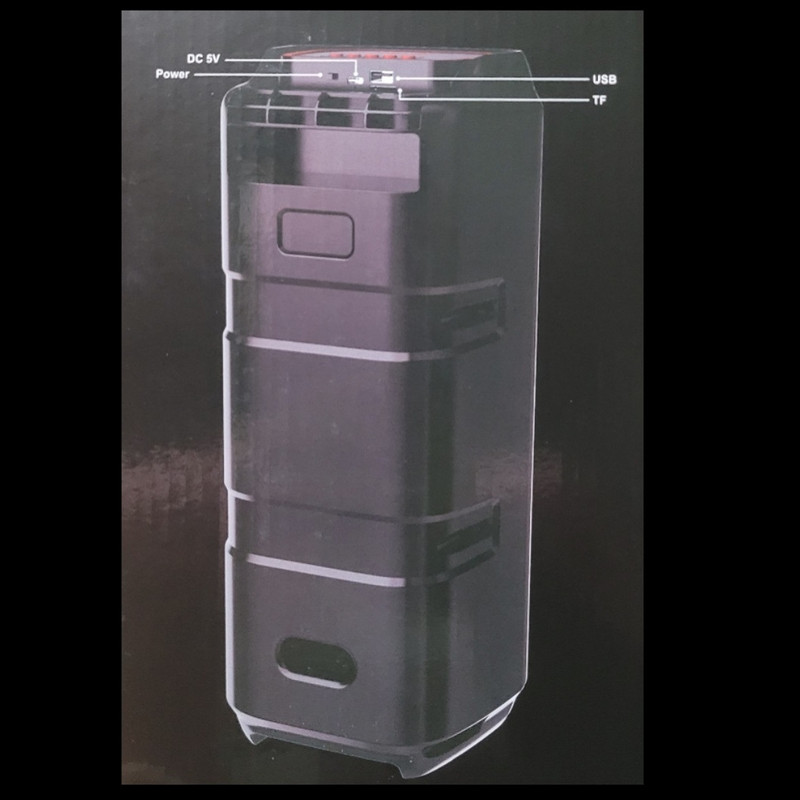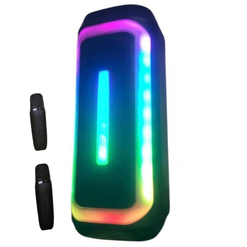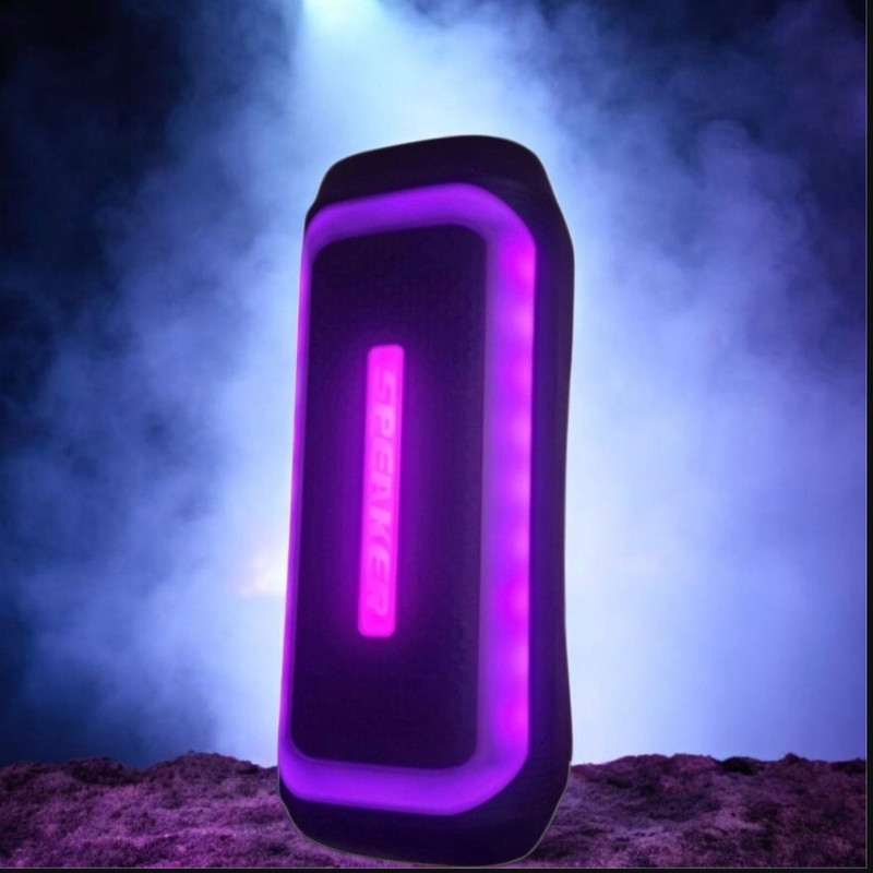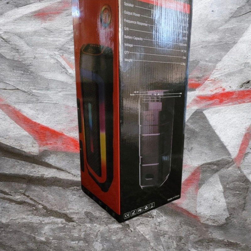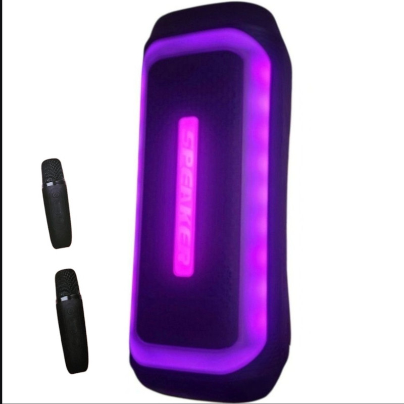 این اسپیکر با امکانات گوناگون نظیر بلوتوث ، پورت USB، TF رادیو FM، دو عدد میکروفن وایرلست با کیفیت، و نورپردازیRGB متنوع و هماهنک با موزی، آن را به بهترین انتخاب برای همه تبدیل میکند. اسپیکر مذکور با توان و کیفیت صدای بالا، یکی از بهترین گزینههای بازار برای علاقمندان به موسیقی و سرگرمی می باشد.از قابلیت های مورد توجه این اسپیکر، استفاده از بلوتوث به روز است که امکان اتصال سریع و پایدار به دستگاههای مختلف را فراهم میکند. با داشتن پورت USB و درگاه کارت حافظه، بلوتوث میتوانید به راحتی از فایلهای موسیقی موجود در حافظه داخلی یا دستگاههای خارجی استفاده کنید. وجود رادیو FM در این اسپیکر، امکان گوش دادن به محتوای مورد علاقه در هر زمان و مکان را فراهم میکند.این اسپیکر قادر است صدای قوی و بینظیری را تولید کند.میکروفون با کیفیت این اسپیکر میتواند لذت استفاده را بیشتر کند. از لحاظ طراحی، این اسپیکر دارای ابعاد مناسب و بلندگوی قدرتمند است. باتری بادوام این اسپیکر امکان استفاده مداوم از آن را فراهم ساخته است. همچنین قابلیت اتصال به گوشیهای هوشمند از طریق بلوتوث، به کاربران این امکان را میدهد تا به راحتی به پخش موسیقی، پاسخگویی به تماسها و استفاده از دستیار صوتی بپردازند. این اسپیکر با کیفیت صدای بینظیر خود، تمام جزئیات موسیقی را به شما منتقل میکند. با صدای قوی و توانایی بازتولید دقیق صدا، شما میتوانید به آهنگهای مورد علاقه خود را با کیفیت بالا گوش دهید . طراحی قابل حمل این اسپیکر، مزیتی است که شما را قادر میسازد همیشه و همه جا از موسیقی لذت ببرید.در مجموع این اسپیکر با ترکیب ویژگیهای منحصربهفرد خود، گزینه ایدهآلی برای موسیقیدوستان، گردشگران و افرادی است که به دنبال یک اسپیکر باکیفیت و قابل حمل هستند. این محصول میتواند تجربه شنیداری بینظیری را برای کاربران فراهم کند و با داشتن قابلیت مقاوم در برابر شوک و گرد و خاک و رطوبت امکان استفاده از آن را در محیطهای بیرون از خانه نیز امکانپذیر سازد. لازم به ذکر است کلیدهای فیزیکی موجود در قسمت بالایی بدنه برای مدیریت و انجام تنظیمات مختلف مانند تغییر موزیک در حال پخش، توقف یا پخش مجدد، تنظیم ولوم صدا، تغییر مود، تنظیم نورپردازی و … تعبیه شده اند.