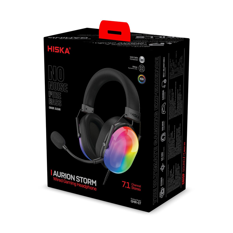 هدست گیمینگ هیسکا مدل GHR-07 یک انتخاب حرفهای برای گیمرهایی است که به کیفیت صدا، طراحی ارگونومیک و دوام اهمیت میدهند. این هدست با صدای استریو 7.1 کاناله، تجربهای فراگیر و واقعی از محیط بازی را به شما ارائه میدهد و کوچکترین جزئیات صدا را با وضوح بالا به گوش میرساند. درایورهای ۵۰ میلیمتری با حساسیت 110±3dB و امپدانس 32 اهم، صدایی قدرتمند، شفاف و متعادل تولید میکنند. بازه فرکانسی 20Hz تا 20KHz نیز پوشش کامل از بیس عمیق تا صداهای ریز را تضمین میکند. از ویژگیهای مهم این هدست میتوان به کنترل صدا (Volume Control) روی بدنه، طراحی گیمینگ جذاب و هدبند خودتنظیم (Self-Adjustable Headband) اشاره کرد که راحتی بیشتری در استفاده طولانیمدت فراهم میکنند. همچنین روی گوشی های این هدست به صورت RGB طراحی شده که حس فوق العاده ای هنگام بازی کردن به شما می دهد.میکروفن همهجهته این محصول با حساسیت 38±3dB- صدایی شفاف و بدون نویز را منتقل میکند. این میکروفن با ابعاد 6×5 میلیمتر از طریق جک ۳.۵ میلیمتری به دستگاه متصل میشود و برای مکالمات درون بازی عملکردی عالی دارد. بدنه هدست از ترکیب مقاوم ABS، PU، TPE و آلیاژ فلزی ساخته شده و با وزن ۳۰۰ گرم و کابل ۲ متری، آزادی عمل و راحتی بالایی را هنگام بازی برای شما فراهم میآورد.