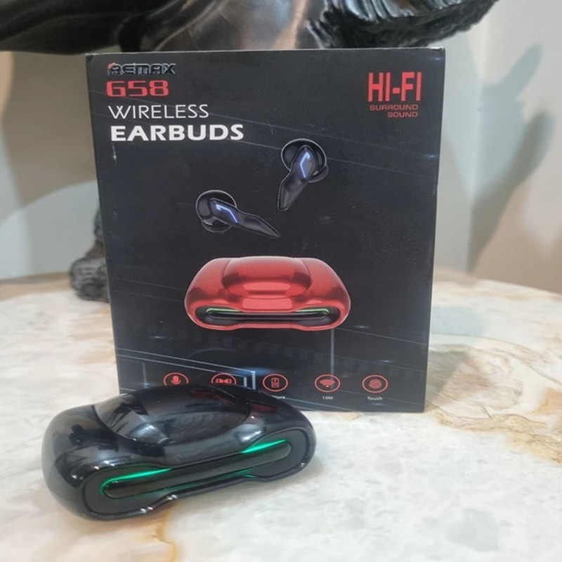 هندزفری ریمکس مدل G58 یک هندزفری بسیار متفاوت برای کاربری عمومی و گیمینگ طراحی شده که دارای طراحی بسیار زیبا و جذابی میباشد در حالی که حذف هوشمند نویز ENC برای جلوگیری از تداخل صدای محیط پشتیبانی میشود، این هدفون همچنین دارای دیافراگم بزرگ و بلندگوهای بلند است تا کیفیت صدای Hi-Fi خیرهکنندهای را در اختیار شما قرار دهد. تراشه ارتقا یافته 5.2+EDR سازگار با بلوتوث در این هدست امکان انتقال داده با تلفات کم، پاسخ سریع و مقاومت بیشتر در برابر تداخل را فراهم می کند، بنابراین می توانید با تاخیر خداحافظی کنید و تجربه ای روان داشته باشید. مواد پلاستیکی با کیفیت بالا ساخته شده است. طول این محصول 5 سانتی متر و عرض آن 7 سانتی متر است. این هدفون بی سیم برای گوش دادن به موسیقی، مکالمه، انجام بازی و ... مناسب است. دارای RGB بسیار زیبا و جذابی میباشد.