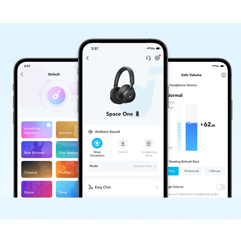 اگر دنبال یکی از برترین هدفونها در زمینه کیفیت صدا هستید این محصول برای شماست. هدفون بیسیم انکر مدل Space One یک انتخاب بینظیر برای عاشقان موسیقی و کاربران حرفهای است که به دنبال کیفیت صدای خارقالعاده هستند. طراحی مدرن و شیک این هدفون، در کنار وزن ۲۵۷ گرمی، تجربهای متفاوت و بدون خستگی را در استفاده طولانی مدت برای شما فراهم میکند. گوشیهای نرم و ارگونومیک آن به خوبی روی گوش قرار میگیرند و عایق مناسبی برای صداهای محیطی هستند. یکی از ویژگیهای برجسته این مدل، درایورهای ۴۰ میلیمتری آن است که صدایی شفاف، متعادل و باس عمیقی را ارائه میدهد. با بلوتوث نسخه ۵.۳ و محدوده عملکرد ۱۰ متری، اتصال بیسیم پایدار و بدون قطعی را تضمین میکند. اگر هم بخواهید از طریق سیم متصل شوید، کابل AUX همراه هدفون این امکان را برای شما فراهم میسازد. یکی دیگر از نقاط قوت Space One، عمر باتری فوقالعاده آن است که در حالت پخش موسیقی تا ۵۵ ساعت دوام میآورد. این ویژگی باعث میشود برای سفرهای طولانی یا استفاده روزمره نیازی به نگرانی درباره شارژ مکرر نداشته باشید. نشانگر LED نیز وضعیت باتری و اتصال را بهخوبی نمایش میدهد. مقاومت در برابر رطوبت و عرق، این هدفون را برای استفاده در باشگاه یا شرایط مختلف آبوهوایی ایدهآل میکند.