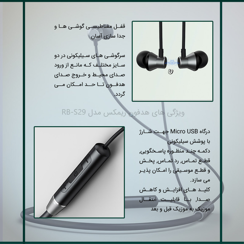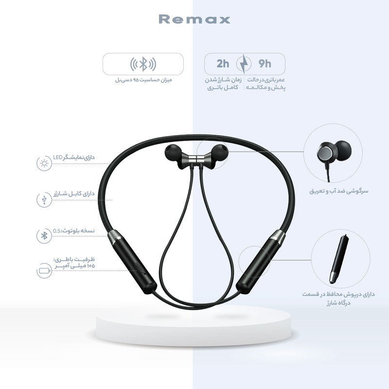 برند ریمکس (Remax) در سال 2010 با هدف تولید محصولات جانبی با کیفیت در کشور چین افتتاح شد. این کمپانی به دلیل ارائه محصولات با کیفیت در کنار استفاده از فناوریهای روز دنیا، به سرعت جایگاه خوبی میان مردم پیدا کرد و امروزه جز معتبرترین برندهای چینی شمرده میشود. هدفون بی سیم ریمکس مدل RB-S29 از جمله تولیدات زیبا و با دوام ریمکس است که به صورت بی سیم قابل استفاده خواهد بود. طراحی این محصول به صورتی است که به آسانی روی گوش انسان قرار گرفته و هیچ آسیبی به گوش وارد نخواهد کرد. جهت شارژر کردن هدفون میتوانید از دو درگاه microUSB قرار گرفته با پوشش سیلیکونی استفاده کنید. این هدست از فناوری high fidelity بهره میبرد که به کمک آن، صدای خروجی با بهترین حالت ممکن و کمترین میزان نویز منتقل خواهد شد. تکنولوژی Hi – Fi یک ویژگی مثبت و عالی برای این هدفون به شمار رفته و کیفیت صدای دریافتی در گوش مخاطب را تضمین خواهد کرد. روی پنل کنترل هدفون بی سیم ریمکس مدل RB-S29 سه دکمه مشاهده خواهید کرد. پائینترین دکمه برای کاهش صدای هدفون و برگشتن به آهنگ قبلی کابرد دارد، دکمه میانی برای پاسخگویی به تلفن، قطع تماس، رد تماس دریافتی، پخش یا قطع موزیک استفاده میشود و سومین دکمه برای افزایش صدای آهنگ و رفتن به آهنگ بعدی در نظر گرفته شده است.به همراه هدفون بی سیم ریمکس مدل RB-S29 یک دفترچه راهنما، دو جفت سرگوشی ضد آب و تعریق و یک کابل شارژ microUSB به شما عرضه خواهد شد. این مدل با رنگ مشکی، حساسیت میکروفون 22 دسی بلی و با تایید اصالت کالا در اختیار شما قرار خواهد گرفت.