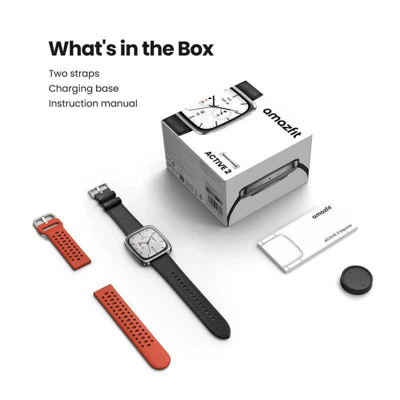 ساعت هوشمند 43 میلی متری امیزفیت مدل Active 2 Square با بند چرمی