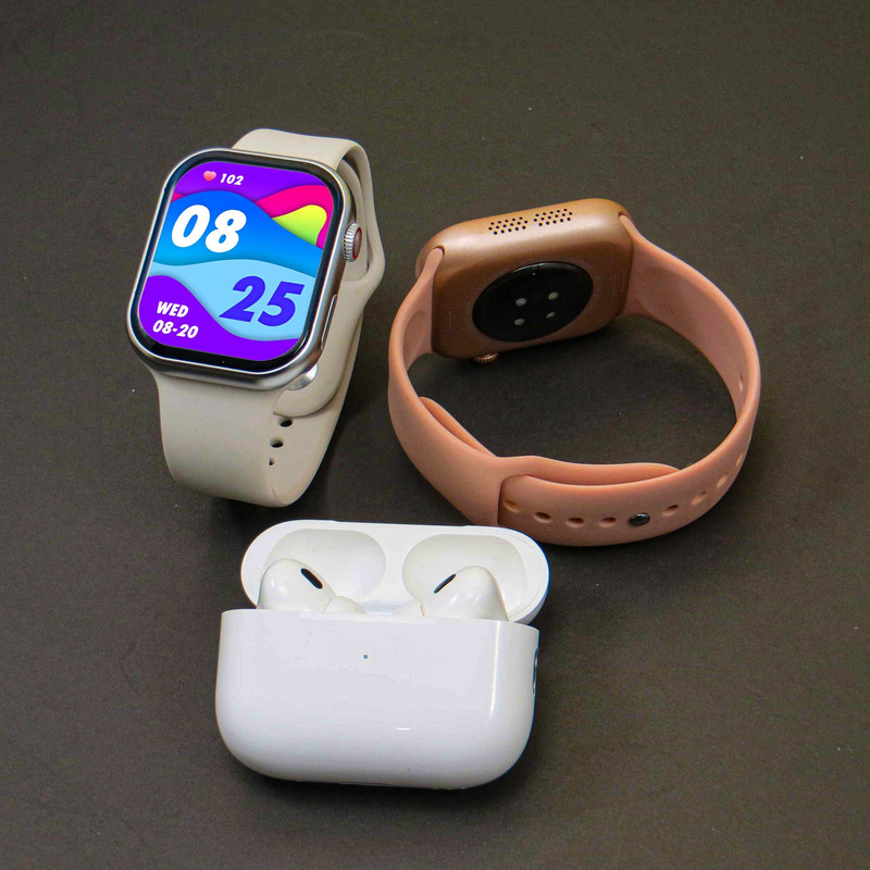 این روزها هندزفری و ساعت هوشمند به یکی از پر طرفدارترین اقلام تبدیل شدند، شرکت ورنا با کنار هم قرار دادن این دو کالای محبوب، سعی کرده تا نیاز این دسته از مشتریان رو تا حدی پاسخ بده و ضمنا با ارائه یه پکیج منحصر به فرد، مشکل انتخاب یک هدیه جذاب را برای شما حل کند. همانطور که میدانید، ساعت هوشمند و هندزفریها خیلی متنوع هستن، برای همین شرکت ورنا پکهای مختلفی رو ارائه داده و برای راحتی مشتری، اسم مدل، آسون انتخاب شده تا دقیقا گویای محتویات داخل پک باشد. این مدل اسمش هست W46 Max به همراه airpod pro و همونطور که از اسمش مشخصه، شامل یه ساعت هوشمند طرح کلاسیک اپل و یه هندزفری، طرح ایرپاد پرو 2 اپل هست. ساعت این مدل دقیقا مشابه سری کلاسیک 46 میلیمتر اپل بوده و یک بند اضافی و هدیه روش هست. از فارسی پشتیبانی میکند و دکمه مجیک باتن یا چرخشی فعاله. البته باید بدانید که همه نمونههای کپی (از جمله همین مدل) امکان اندازهگیری شاخصهای سلامتی مثل سنسور اکسیژن یا فشار خون را ندارد و اعداد نمایش داده شده فقط جنبه تزئینی دارند، بعضی از سنسورها هم که کار میکنه (مثل قدم شمار) ممکنه با خطای زیادی همراه باشه. پس معیارتون نباید اینا باشه بلکه شباهت و امکانات دیگه رو در نظر بگیرید. این ساعت مجهز به اسپیکر و میکروفون داخلیه و با اتصال اون به موبایل، علاوه بر مکالمه میتوانید به موسیقی گوش کنید. عکس زمینه ساعت بصورت رایگان قابل دانلود و تغییر بوده و حتی میتونید عکس دلخواه، مثلا فرزندتون رو بزارید. یک هندزفری هم داخل این پک هست که دقیقا طرح آخرین نسخه ایرپادپرو 2 اپل هست. این مدل یک سری لاستیکی روی گوشیها داره که باعث میشه تو گوشتون کیپ شه و نیوفته. از کیفیت خوبی نسبت به پولی که پرداخت میکنید برخوردار بوده و میتونید روش حساب کنید. البته بدیهیه که نویز کنسلینگ قدرتمندی که بشه تو محیط شلوغ روش حساب کرد نداره ولی توی کپی ها جزو بهتریناست. با یکبار شارژ هندزفری میتوانید حدود 4 ساعت بدون توقف به موسیقی گوش کنید. باکسش هم 2-3 بار هندزفری رو شارژ میکنه.خلاصه اگر میخواهید با هزینه کم، هم یه ساعت و هم یه هندزفری با قیمت پایین و کیفیت متوسط که با اپل مو نمیزنه داشته باشین تو خرید این مدل شک نکنید. اگر هم مایل بودین میتوانید مدلها و پکهای دیگه (ساعت هوشمند ورنا) رو تو سایت سرچ کنید و ببینید.