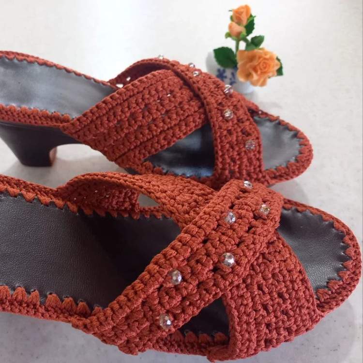 صندل مدل ضربدری با پاشنه ۵ سانتی متر و با نگین های سنگ تراش تزئین شده است