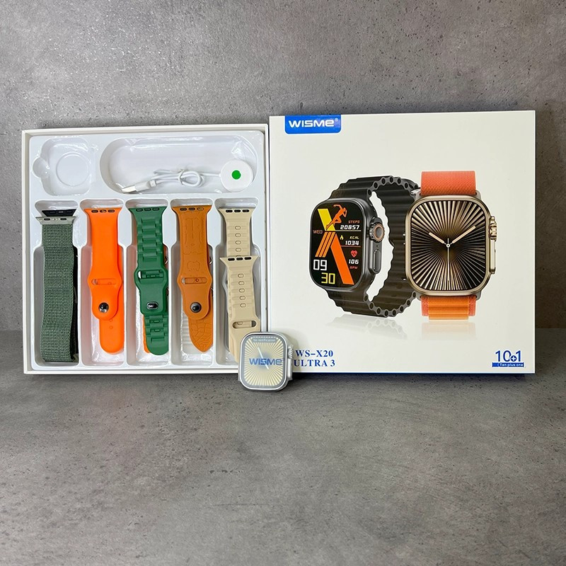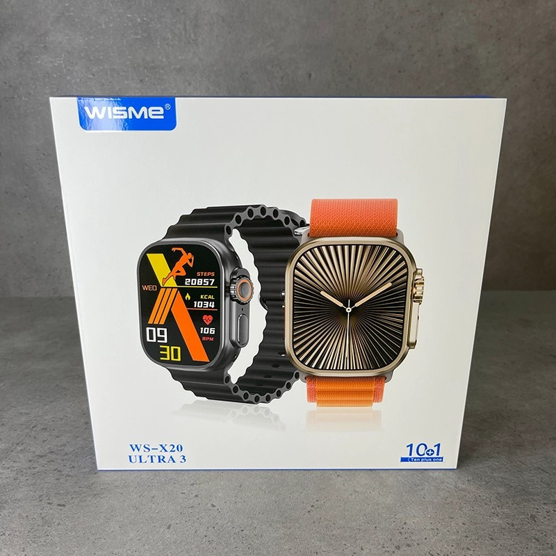 مشخصات فنی ساعت هوشمند WISME WS-X20 Ultra3 نام مدل: WS-X20 Ultra3 برند: ویزمی (WISME) جنس بدنه: آلومینیوم رنگ بدنه: تیتانیوم، مشکی سایز ساعت: 49 میلیمتر فرم صفحه: مستطیل صفحه نمایش: رنگی، لمسی، AMOLED اندازه صفحه نمایش: 2.05 اینچ نمایشگر همیشه روشن (Always On Display): دارد دکمه پاور: دارد مجیک باتن (دکمه چرخان): دارد پیچ پشت ساعت: دارد قفل بند (پین بند): دارد جنس بند: سیلیکونی (10 عدد بند متنوع همراه ساعت) قابلیت تعویض بند: دارد امکان نصب گلس و کاور محافظ: دارد مقاومت در برابر آب: دارد حافظه داخلی: ندارد قابلیتها و ارتباطات قابلیت مکالمه مستقیم: دارد مکالمه از طریق بلوتوث: دارد مکالمه از طریق سیمکارت: ندارد قابلیت پخش و کنترل موسیقی: دارد ذخیره موسیقی: ندارد ضبط صدا: ندارد اتصال مستقیم به ایرپاد: ندارد حافظه رم: ندارد تعداد هسته پردازنده: 2 هسته بلوتوث و NFC: دارد Wi-Fi و GPS: ندارد سیستم عامل: Watch OS سازگار با: iOS و اندروید پشتیبانی از منو و اعلان فارسی: دارد دستیار صوتی: دارد کنترل دوربین گوشی: دارد کورنومتر، تایمر و ماشین حساب: دارد رمزگذاری روی ساعت: دارد گالری تصاویر: ندارد گذاشتن پسزمینه دلخواه: دارد قابلیت نصب برنامه یا بازی: ندارد قابلیت ارسال پیام: ندارد حسگرها و سلامتی ضربان قلب اکسیژن خون فشار خون قند خون نوار قلب (ECG) کالری شمار گامشمار پایش خواب ارتفاع سنج فشارسنج دستور حرکتی یادآورهای سلامتی روشن شدن با بالا آوردن دست قطبنما: ندارد خاموشی صفحه با کف دست: ندارد باتری و شارژ نوع باتری: لیتیوم-یونی باتری قابل تعویض: ندارد شارژدهی در حالت اتصال: 1 الی 3 روز شارژدهی در حالت استندبای: 2 الی 7 روز فناوری شارژ باتری: بیسیم (وایرلس) مدت زمان شارژ شدن: 2 ساعت اقلام همراه دفترچه راهنما 10 عدد بند در جعبه شارژر وایرلسی