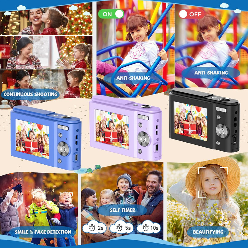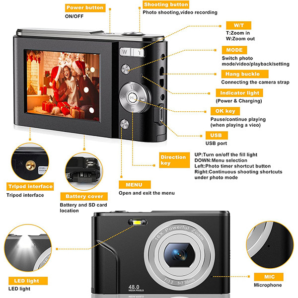 (هدیه و خدمات عالی) این دوربین دیجیتال HD انتخاب خوبی برای مبتدیان، کودکان/مبتدیان/دانش آموزان/سالمندان و دوستان است و استفاده از آن بسیار آسان است. این دوربین دیجیتال بهترین هدیه برای تعطیلات، تولد و هر مناسبت خاصی است.