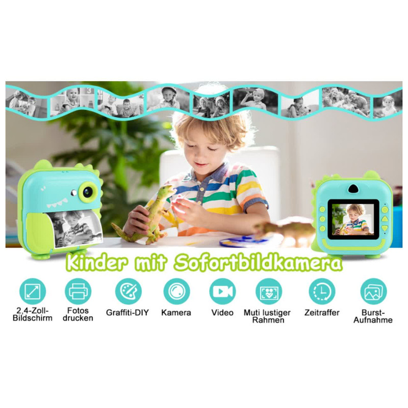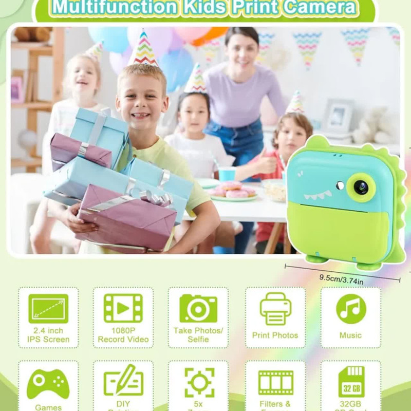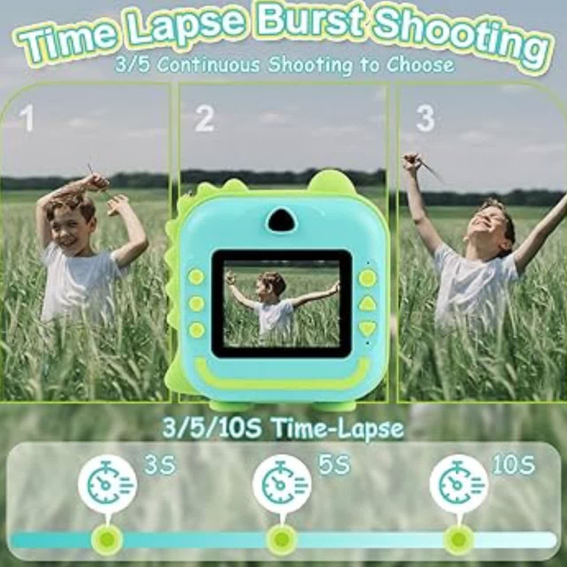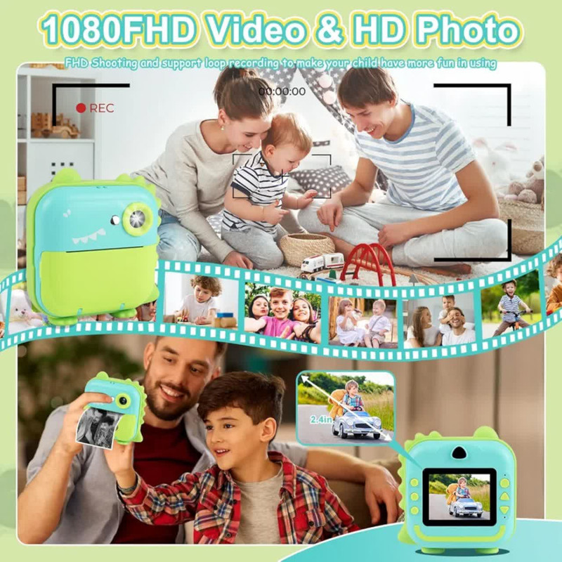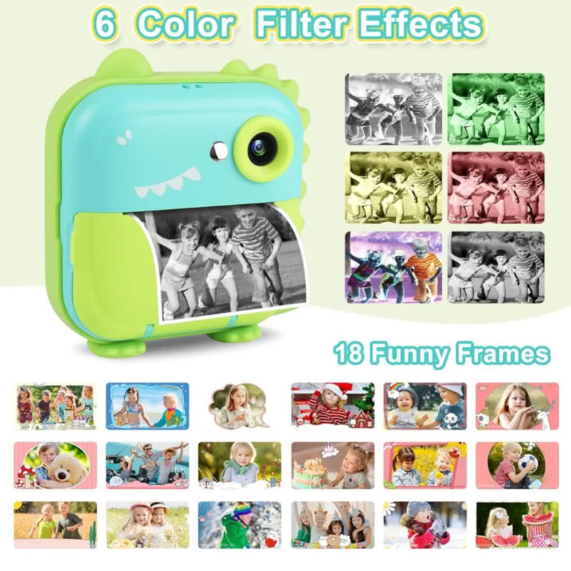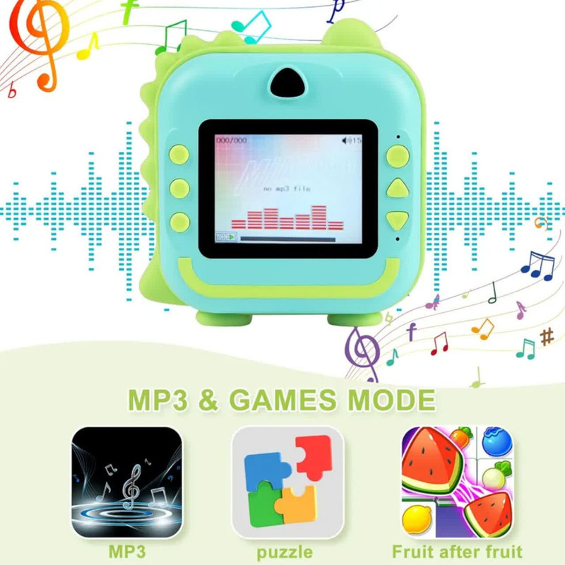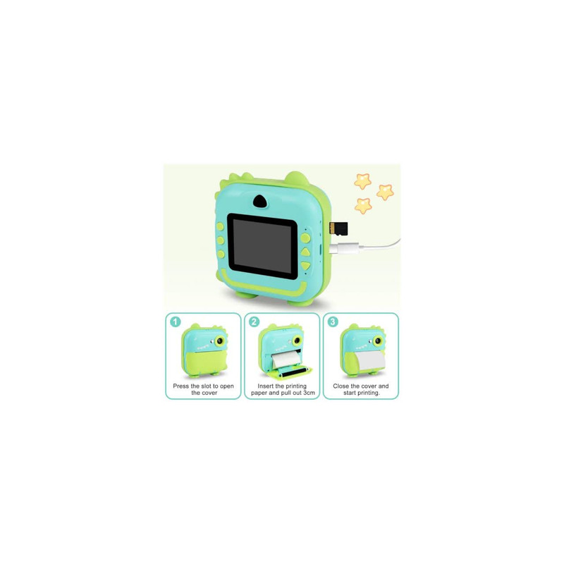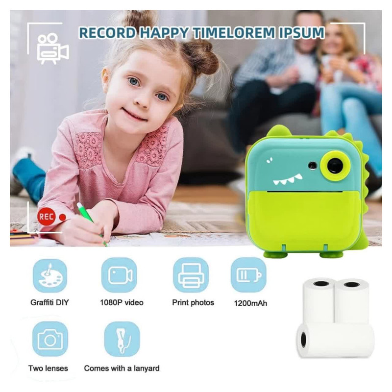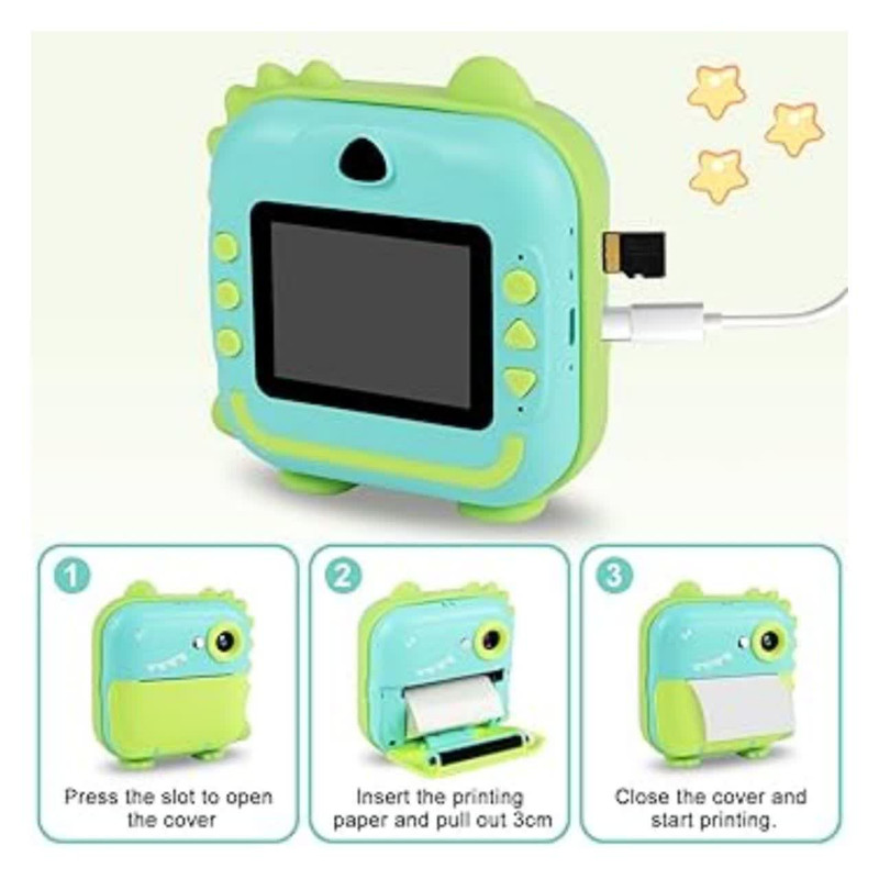 دوربین عکاسی چاپ سریع ناب سل مدل شارژی موزیکال طرح دایناسور، با دقت موثر 48 مگاپیکسل، فیلمبرداری با رزولیشن FULL HD، نمایشگر ثابت،دارای گیم، قابلیت پخش موزیک به همراه سه عدد رول ،فناوری چاپ حرارتی فوری عکس های سیاه و سفید را روی کاغذ عکس سازگار با محیط زیست، ایمن و بدون BPA چاپ می کند. پسران و دختران می توانند از مداد رنگی برای ساختن دکوراسیون DIY و رنگ آمیزی عکس های چاپ شده استفاده کنند، مهارت های عملی خود را بهبود بخشند و کنجکاوی و علاقه خود را به عکاسی پرورش دهند و خلاقیت و تخیل کودکان را تحریک کنند فیلمبرداری HD 1080p، باتری قابل شارژ 1200 میلی آمپر ساعت، 12 مگاپیکسل، دوربین صفحه نمایش 3.5 اینچی دارای 12 مگاپیکسل است که می تواند تا 1920 x 1080P فیلم بگیرد، لحظه فوق العاده واضحی را برای کودکان نگه می دارد. اگر کارت SD وجود نداشته باشد، دوربین می تواند مستقیماً چاپ کند، اما تصاویر و فیلم ها را نمی توان ذخیره کرد چاپ مستقیم، صفحه نمایش بزرگ 3.5 اینچی،، گرافیتی DIY، انتقال OTG، ویدیو، سلفی زماندار، قاب عکس جالب، فیلتر خلاقانه، حفاظت از محیط زیست. با روشنایی متفاوت محیط، وضوح عکس و تراکم چاپ، عکس های چاپ شده جلوه های متفاوتی خواهند داشت. لطفاً برای نتیجه بهتر تنظیمات پارامتر مناسب (رزولوشن عکس / وضوح عکس / چگالی فشار و غیره) را انجام دهید .