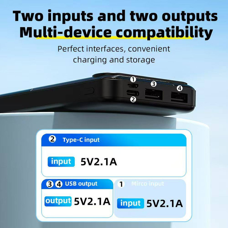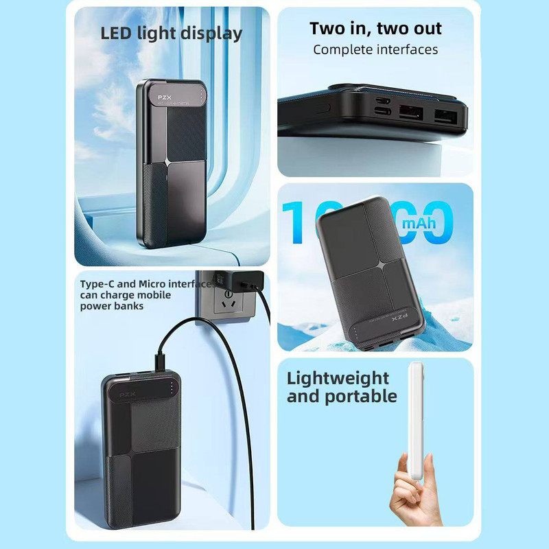 برند معتبر PZX - ظرفیت 10 هزار میلی آمپر ساعت - دارای 2 درگاه USB خروجی - دو درگاه ورودی Type-c و Micro USB - بسیار سبک - طراحی ساده و زیبا