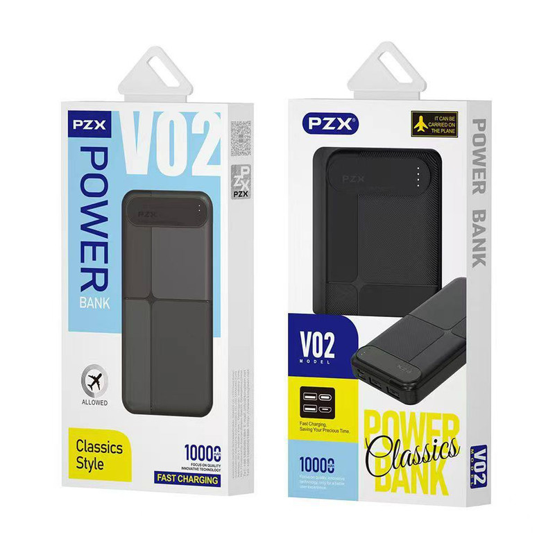 پاوربانک PZX مدل V02 با ظرفیت 10000 میلیآمپر ساعت یک منبع انرژی همراه سبک و خوشدست است که با طراحی کلاسیک و استاندارد ورود به کابین هواپیما برای استفاده روزمره و سفر گزینهای ایدهآل محسوب میشود. این پاوربانک از طریق درگاه تایپسی با قابلیت فست شارژ شارژ میشود و علاوه بر آن ورودی میکرو USB نیز دارد. دو خروجی USB برای شارژ همزمان دو دستگاه در نظر گرفته شده و وجود چهار چراغ LED امکان اطلاع از میزان شارژ باقیمانده را فراهم میکند. ظرفیت مناسب، خوشدست و سبک، شارژ سریع خود پاوربانک و طراحی کلاسیک این محصول را به انتخابی مطمئن برای دانشجویان، کارمندان و مسافران تبدیل کرده است.