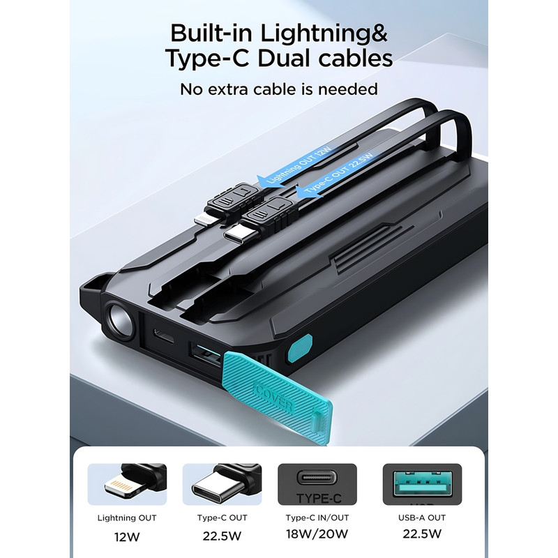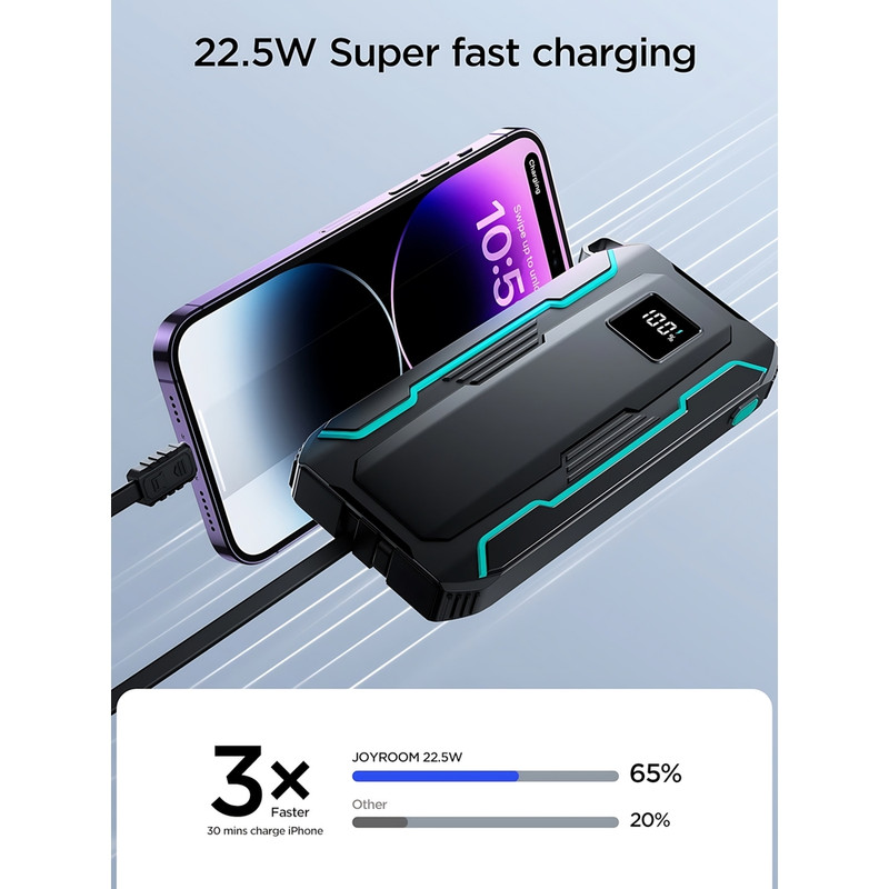 پاوربانک جوی روم مدل JR-L017 با ظرفیت 10000 میلیآمپرساعت، یک شاهکار چندکاره و مطمئن که شارژ و همراهی دستگاههای شما را با سرعت و ایمنی بیمانند تضمین میکند. این پاوربانک با بدنهای از جنس ABS و پلیکربنات ضدحریق، در رنگ مشکی و ابعاد 151×68×18 میلیمتر، طراحی باریک و سبکی ارائه میدهد که با ظرفیت واقعی 6000 میلیآمپر (5V / 3A) و توان 37 واتساعت، کارایی بالایی را در قالبی جمعوجور به ارمغان میآورد. JR-L017 با توان خروجی حداکثر 22.5 وات و پشتیبانی از پروتکلهای شارژ سریع PD، QC، FCP، SCP، VOOC و AFC، امکان شارژ همزمان چهار دستگاه را از طریق پورتهای USB-A (4.5V / 5A، 5V / 4.5A، 5V / 3A، 9V / 2A، 12V / 1.5A)، USB-C (5V / 3A، 9V / 2.22A، 12V / 1.67A)، کابل USB-C (4.5V / 5A، 5V / 4.5A، 5V / 3A، 9V / 2A، 12V / 1.5A) و کابل لایتنینگ (5V / 2.4A) فراهم میکند. دو پورت ورودی تایپسی (5V / 3A، 9V / 2A، 12V / 1.5A) با توان 18 وات، شارژ سریع پاوربانک را تضمین میکنند، و نمایشگر LED هوشمند، سطح شارژ باقیمانده را بهصورت لحظهای نشان میدهد. این پاوربانک با باتری لیتیوم پلیمر، برای شارژ گوشی، هدفون، تبلت و بلندگوی بلوتوث مناسب است و با طراحی چندکاره، همراهی ایدهآل برای هر شرایطی است. برای اطمینان از اصالت و کیفیت محصول، توصیه میکنیم که فقط از فروشندگان معتبر مانند تکنیک تل که سابقه درخشانی در ارائه محصولات باکیفیت دارند خرید کنید. متاسفانه، برخی فروشندگان با قیمتهای پایینتر محصولات های کپی را به بازار عرضه میکنند که کیفیت ضعیفی دارند و میتوانند تجربه شما را تحت الشعاع قرار دهند. چراغ قوه داخلی با سه حالت روشنایی (نور قوی با نگه داشتن دکمه 5 ثانیه، نور ضعیف با یک کلیک، و سیگنال SOS با دو کلیک) در موقعیتهای اضطراری نجاتبخش است. استفاده از پلی کربنات ضدحریق و ضدآب در تولید این محصول، ایمنی کامل را در هر شرایطی تضمین میکند، و چیپست هوشمند محافظتی نیز، دستگاه شما را از اتصال کوتاه، نوسانات آمپر و ولتاژ و افزایش حرارت محافظت میکند. اگر به دنبال محصولی هستید که شارژ سریع، طراحی هوشمند و ایمنی پیشرفته را در کنار هم ارائه دهد، JR-L017 انتخابی است که تجربه شما را متحول میکند؛ محصولی که هر کاربری را با کارایی، زیبایی و اطمیناناش شگفتزده میکند.