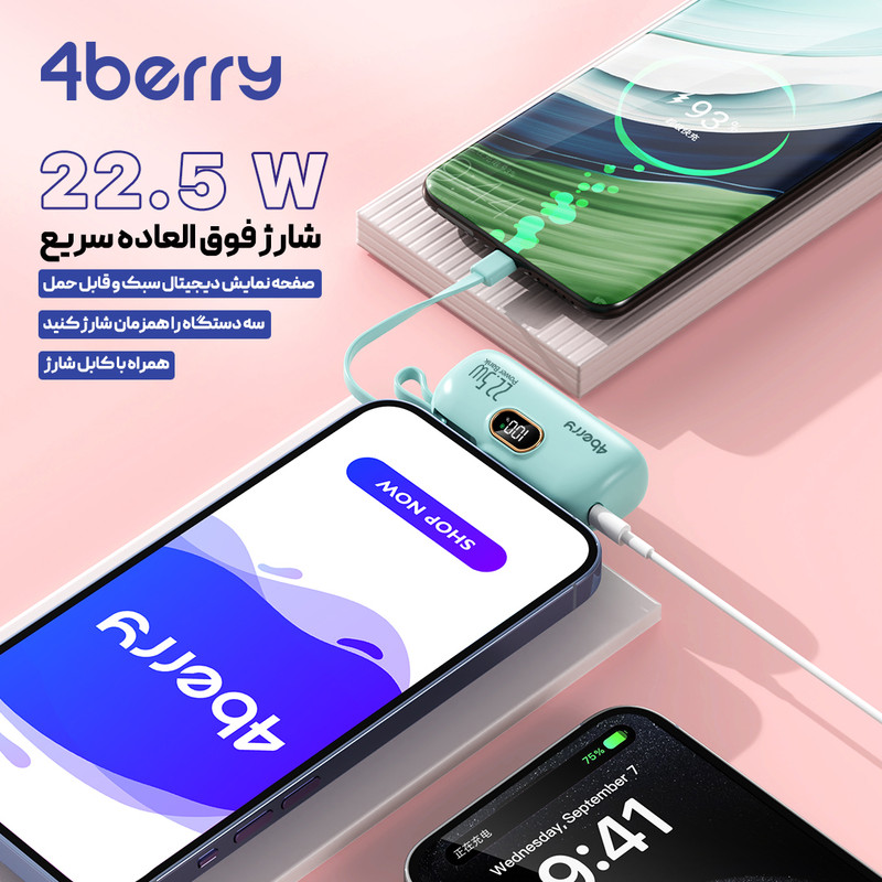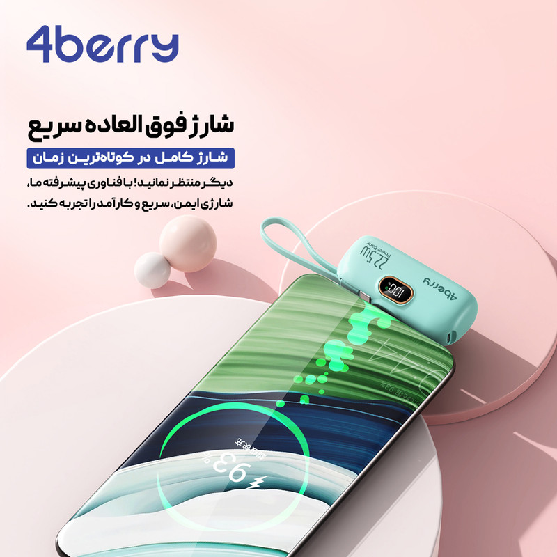 پاوربانک مینی 4berry با ظرفیت 5000 میلیآمپر ساعت، یک همراه ایدهآل برای شارژ دستگاههای شما در هر مکان است. این محصول با طراحی کوچک و سبک، حمل آسانی دارد و با دو پورت لایتنینگ و تایپ C، امکان شارژ همزمان دستگاههای مختلف را فراهم میکند. مناسب برای کاربران دستگاههای اپل و سایر برندها، این پاوربانک علاوه بر کارایی، امنیت و دوام بالایی نیز ارائه میدهد. با 4berry، همیشه انرژی کافی برای دستگاههای خود خواهید داشت!