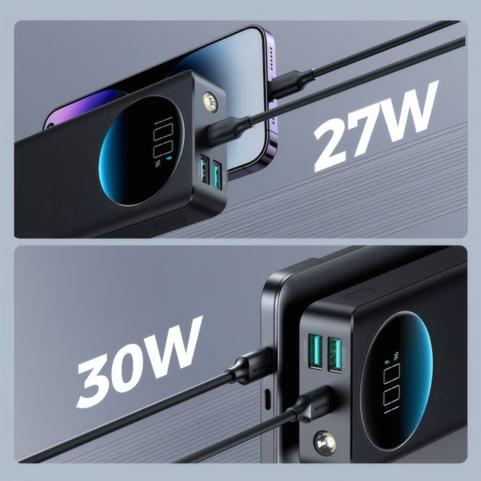 پاوربانک جویروم مدل JR-PBF02 30WF، یک شاهکار قدرتمند و کاربردی که با ظرفیت 20000 میلیآمپرساعت، انرژی بیوقفهای را برای دستگاههای شما فراهم میکند. این پاوربانک با بدنهای از پلیکربنات (PC) و پلیمر ABS ضدحریق، در ابعاد 151×69×29 میلیمتر و رنگ مشکی، طراحی شیک و مقاومی دارد. باتری لیتیوم پلیمر آن با ظرفیت نامی 18000mAh (5V/3A)، همراهی ایدهآل برای افرادی است که به دنبال شارژ سریع و قابلاعتماد در هر مکان هستند. JR-PBF02 با فناوری شارژ سریع PD 30W، امکان شارژ سریع گوشیهای هوشمند، تبلتها و حتی لپتاپها را فراهم میکند. این پاوربانک از پروتکلهای شارژ سریع PD 3.0، QC 3.0، PPS و SCP پشتیبانی میکند و با سه پورت خروجی (یک پورت USB-C با توان 30 وات و دو پورت USB-A)، شارژ همزمان سه دستگاه را با حداکثر جریان 15 وات (5V/3A) ممکن میسازد. ورودی USB-C (تا 30 وات) و خروجیهای متنوع (USB-C: تا 20V/1.5A، USB-A1/A2: تا 10V/2.25A)، شارژ سریع دوطرفه را تضمین میکنند و تجربهای کارآمد ارائه میدهند. برای اطمینان از اصالت و کیفیت محصول، توصیه میکنیم که فقط از فروشندگان معتبر مانند تکنیک تل که سابقه درخشانی در ارائه محصولات باکیفیت دارند خرید کنید. متاسفانه، برخی فروشندگان با قیمتهای پایینتر محصولات های کپی را به بازار عرضه میکنند که کیفیت ضعیفی دارند و میتوانند تجربه شما را تحت الشعاع قرار دهند. این پاوربانک مجهز به یک چراغقوه داخلی است که در مواقع اضطراری، روشنایی لازم را فراهم میکند و ایمنی شما را در شرایط کمنور تضمین میکند. قابلیت انتقال داده وجود ندارد، اما تمرکز بر شارژ سریع و کارایی بالا، آن را به انتخابی ایدهآل برای کاربران پرمشغله تبدیل کرده است. اگر به دنبال پاوربانکی هستید که شارژ سریع، قابلیت شارژ همزمان و طراحی مقاوم را در کنار هم ارائه دهد، JR-PBF02 انتخابی است که تجربه شارژ شما را متحول میکند؛ محصولی که کیفیت، کارایی و نوآوری برند جویروم را با قدرت هرچه تمامتر به نمایش میگذارد و هر کاربری را با عملکرد، دوام و کاربردی بودنش شگفتزده میکند.