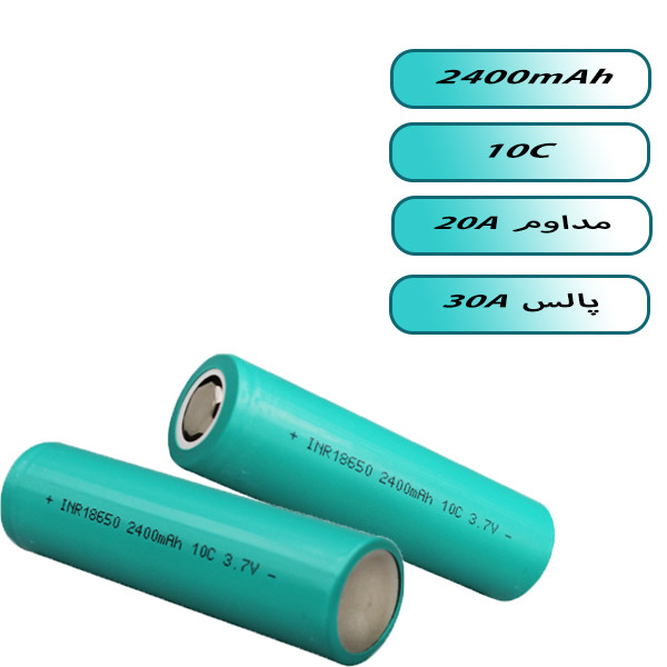 باتری لیتیوم یون 18650 با سی ریت 10 یا 10C با ظرفیت 2400 میلی آمپر با دوام و ماندگاری بالا و ضریب جریان تخلیه 10C کاملا واقعی می باشد.