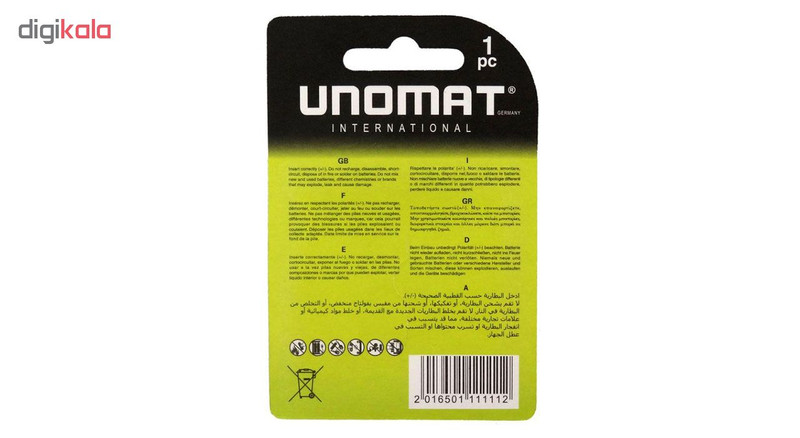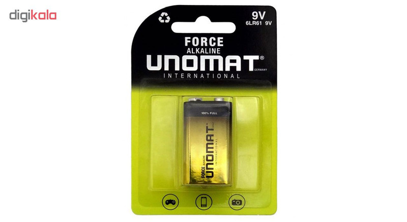 «Force Alkaline» محصولی از شرکت «یونومات» (UNOMAT) و از سری باتری های «Alkaline» این شرکت است. این محصول شامل 1 عدد باتری کتابی با ولتاژ 9 ولت است. نوع تکنولوژی بهکار رفته در این محصول آلکالین است و قابلیت شارژ مجدد ندارد. باتریهای کتابی از سایزهای استاندارد پیلهای الکتریکی هستند که امروزه کاربرد وسیعی در اسباببازیها پیدا کردهاند. این باتری برای دستگاههایی که نیازمند انرژی کم اما بهطور مداوم هستند بسیار خوب عمل میکند. مدل «Force Alkaline» از سری محصولات شرکت «یونومات» (UNOMAT) بوده که چندین برابر بیشتر از باتریهای معمولی ظرفیت دارد و در نتیجه سرویسدهی بیشتری را برای کاربران به همراه میآورد. بهطور کلی قیمت باتریهای آلکالاین از باتریهای معمولی بیشتر است اما با توجه به ظرفیت بیشتر این نوع از باتریها معمولاً بهصرفهتر هستند.