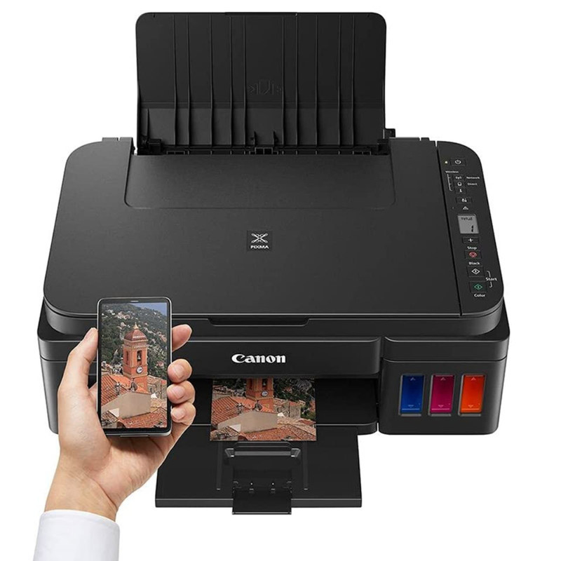پرینتر«کانن» (Canon) مدل «PIXMA G3410»باقابلیت چاپ رنگی برای مصارف خانگی و اداری گزینهی مناسبی به شمار میرود. این دستگاه، علاوه بر پرینت، از قابلیتهای اسکن و کپی نیز بهره میبرد. اگر محل کار کوچکی دارید، این پرینتر با ابعاد جمعوجور، فضای کوچکی از میز کارتان را اشغال خواهد کرد و با وزن 6.3 کیلوگرمی بهراحتی قابل جابهجایی است. با مجهز شدن به سیستم مخزن جوهر، پرینتر PIXMA G3410 هزینهها را بسیار کاهش داده است. در این سیستم کافی است کاربر جوهر را در مخزن موردنظر و همرنگ بریزد و به امور چاپی بپردازد. پرینترهای پیکسما برای چاپ تصاویر گزینهی بسیار ایدئالی هستند. این پرینتر به رزولوشن چاپ 1200 × 4800 dpi مجهز شده است و تصاویر رنگی و متون سیاهوسفید را با کیفیت بالایی به چاپ میرساند. از دلایلی که باعث شده تا پرینتر PIXMA G3410 برای چاپ تصاویر مناسب باشد، قابلیت چاپ بدون حاشیه است؛ با این ویژگی کاربر میتواند تصاویر موردنظر خود را در تمام صفحه و بدون هیچ حاشیهی سفید اضافی چاپ کند. این پرینتر کانن میتواند در هر دقیقه 5 عکس رنگی و 8.8 عکس سیاهوسفید را چاپ کند. پرینتر PIXMA G3410 به اتصال USB 2.0 و وایفای مجهز شده است. به وسیلهی اتصال وایفای کاربران میتوانند در کوتاهترین زمان و بدون اتصال کابلی، به پرینتر متصل شده و تصاویر و اسنادشان را به چاپ برسانند.
