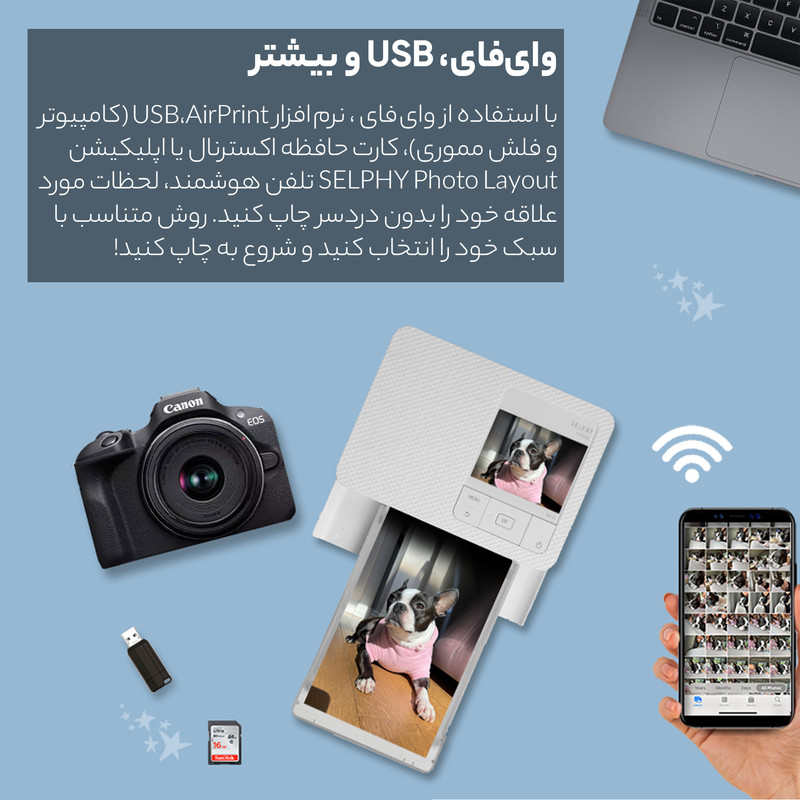 با ترکیب طراحی سبک، فناوری چاپ پیشرفته و امکانات ارتباطی مدرن، Canon SELPHY CP1500 تجربه چاپ عکس را سریع، آسان و بسیار باکیفیت میسازد.