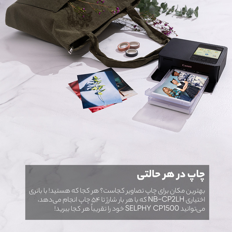 یکی از مزیتهای کاربردی مدل CP1500 قابلیت استفاده به صورت پرتابل است؛ به این معنا که کاربر میتواند با تهیه یک باتری سازگار، آن را در هر مکان بدون نیاز به برق مستقیم استفاده کند. این ویژگی در کنار کیفیت چاپ بینقص، آن را به انتخابی عالی برای عکاسان حرفهای، علاقهمندان به چاپ فوری یا افرادی که به هدیه دادن عکسهای شخصیشده علاقه دارند، تبدیل کرده است.