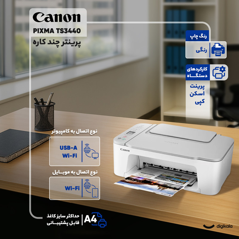 پرینترها از جمله محصولات پرفروش هستند و میزان استقبال بالا از این ابزار باعث شده است تا شاهد فعالیت شرکتهای بسیار زیادی در این حوزه و در نتیجه تنوع بالای آنها باشیم. شرکت کانن به عنوان یکی از با سابقهترین و مشهورترین شرکتهای فعال در زمینهی تولید پرینتر شناخته میشود. محصولات شرکت کانن به دلیل کیفیت ساخت فوقالعادهای که دارند زبانزد هستند. پرینتر کانن مدل PIXMA TS3440 از محصولات پرفروش این شرکت است که در کنار قیمت معقول، کیفیت و ویژگیهای قابل توجهای را در خود میبیند. این پرینتر چند کاره میتواند اموری از جمله اسکن، کپی و پرینت را انجام دهد. همچنین، قابلیت اتصال به اینترنت بی سیم هم از دیگر ویژگیهای این پرینتر است و به ارزش خرید آن میافزاید. علاوه بر این، ویژگی خاصی که این دستگاه را از سایر دستگاههای مشابه و هم ردهی خود متمایز میکند، قابلیت چاپ بر روی کاغذ عکس مگنتی (عکسهایی که به درب یخچال و مواردی از این قبیل قابل چسباندن هستند) است.