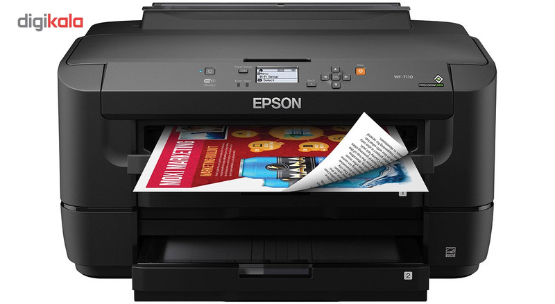 دستگاه WorkForce WF-7110 ساخت شرکت اپسون پرینتری جوهرافشان است که برای استفادههای سنگین شخصی یا اداری و آموزشی طراحی شده است. این پرینتر جوهرافشان از دقت و کیفیت بسیار خوبی در چاپ برخوردار است و میتواند برای پرینت کاتالوگ، بروشور و موارد مشابه مورداستفاده قرار گیرد. این پرینتر قادر است برگههایی در اندازههای مختلف را در حداکثر سایز A3 چاپ کند. از دیگر قابلیتهای این پرینتر قدرتمند میتوان به قابلیت چاپ دوروی آن اشاره نمود. قابلیت اتصال بیسیم مستقیم WiFi Direct در این محصول به کاربر اجازه میدهد تا با استفاده از تلفنهای همراه هوشمند و تبلتها بدون نیاز به مودم یا روتر بیسیم میانجی بهصورت مستقیم به پرینتر متصل شود و اسناد خود را بهراحتی به چاپ برساند. صفحهنمایشی در اندازهی 2.2 اینچ در این دستگاه تعبیه شده است که استفاده از آن را تسهیل مینماید. دستگاه ازآنجاکه برای مصارف اداری طراحی شده است عملکرد بسیار خوبی در چاپ متن نیز دارد و کیفیت خوبی ارائه میدهد.
