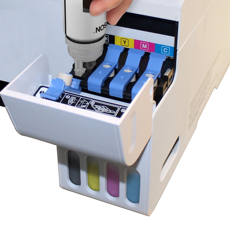 پرینتر فوق از لحاظ مشخصات ظاهری یک چاپگر جمع و جور با ظاهری جذاب و به رنگ مشکی با پنل کلیدهای کنترلی است که در سمت راست آن باکس یا مخزن جوهر جهت انجام عملیات شارژ و تعویض تعبیه شده است.