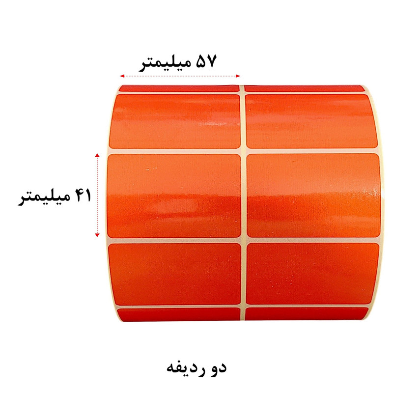 مشخصات این محصول شامل ابعاد هر لیبل 57 میلیمتر عرض × 41 میلیمتر ارتفاع، جنس لیبل PVC نیمهبراق، رنگ نارنجی و چسبندگی بسیار قوی و مقاوم در برابر رطوبت است.