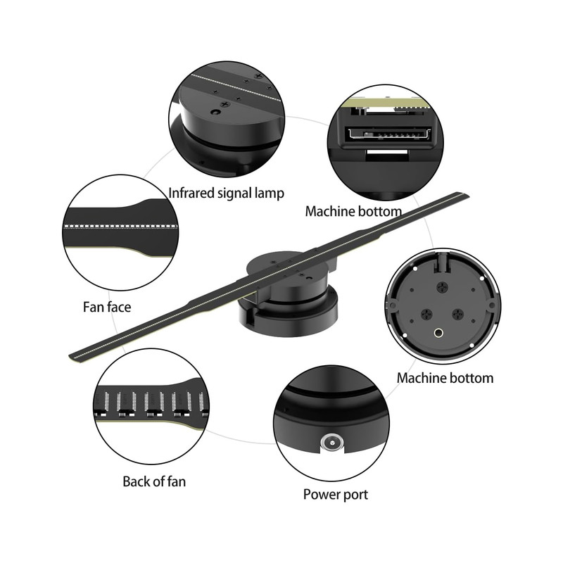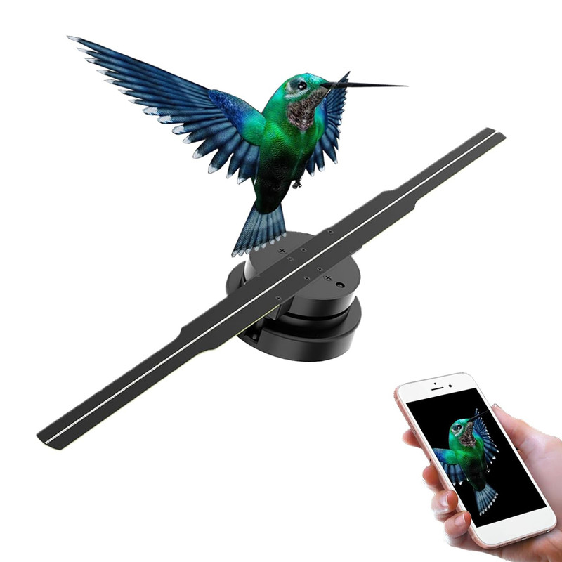 دستگاه هولوگرافیک سه بعدی جدیدترین و جذابترین روش نمایش تصاویر سه بعدی برای نمایشگاهها،مراکز خرید، ویترین مغازه ها، رستورانها، موزه، کنسرتها، شرکت ها، ادارات ، سازمانها و کلیه مکانها و تبلیغات محیطی می باشد.این دستگاه با بهره گیری از یک ماژول متحرک ال ای دی چرخشی باعث ایجاد تصاویر جذاب سه بعدی می شود.این نمایشگر سه بعدی می تواند ویدئو و تصاویر رنگی و متحرک را به صورت سه بعدی معلق در هوا نمایش دهد.