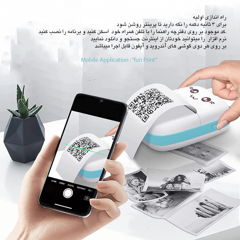 پرینتر حرارتی قابل حمل به شما این امکان را میدهد تا یادداشتها، لیستهای خرید روزانه و تصاویر خود را در هر زمان و مکانی به راحتی چاپ کنید. استفاده از این پرینتر حرارتی بسیار آسان است. تنها کافی است اپلیکیشن iprint را برروی گوشی اندروید یا iOS خود دانلود و نصب نمایید. توسط اپلیکشن اختصاصی این پرینتر میتوانید نوشتهها و تصاویر خود را ویرایش کنید و آن را برای چاپ ارسال کنید. این پرینتر حرارتی قابل حمل با ابعاد کوچک خود مجهز به یک باتری 1000 میلیآمپری لیتیوم یونی است که در حالت کامل بودن میزان شارژ، میتواند به تعداد 4 رول کاغذ از طرحهای شما را با بهترین کیفیت چاپ کند. برای شارژ کردن به منبع برق 5 ولت (usb،شارژر موبایل،لپتاب و …)متصل شود.